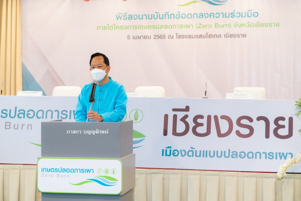 ด้าน นายภาสกร บุญญลักษม์ ผู้ว่าราชการจังหวัดเชียงราย กล่าวว่า จังหวัดเชียงรายและหน่วยงานภาครัฐที่เกี่ยวข้องได้เล็งเห็นถึงความสำคัญในการรณรงค์ลดการเผาในพื้นที่การเกษตรและพื้นที่ป่าโดยที่ผ่านมา ได้ประกาศขอความร่วมมืองดเผาในที่โล่งทุกชนิด การดำเนินกิจกรรมทำแนวกันไฟลดปริมาณเชื้อเพลิงในป่า รวมถึงการสนับสนุนให้เกษตรกรชุมชนต้นแบบนำเศษวัสดุเหลือใช้ทางการเกษตรมาใช้ประโยชน์เพิ่มมูลค่าและสร้างรายได้