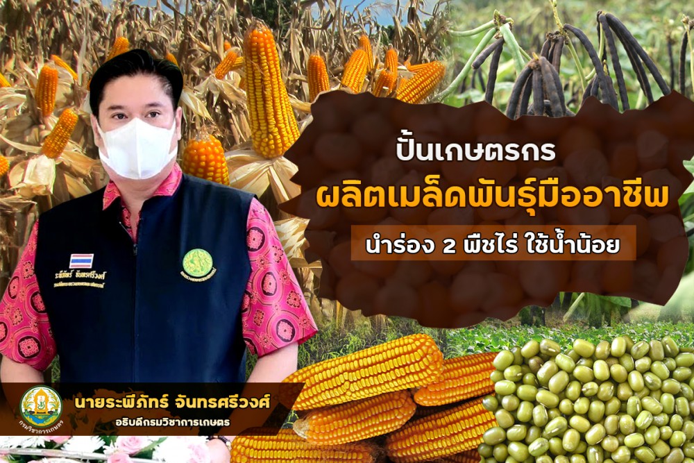 .กรมวิชาการเกษตร เสริมความแกร่งให้เกษตรกร ดันขึ้นแท่นผู้ผลิตเมล็ดพันธุ์มืออาชีพ กระเดิมการผลิตเมล็ดพันธุ์ก่อน 2 พืชไร่ “ถั่วเขียวชัยนาท 3 -ข้าวโพดเลี้ยงสัตว์ลูกผสมนครสวรรค์ 5″ คุณสทบัติพิเศษใช้น้ำน้อย รองรับปรับเปลี่ยนพื้นที่ปลูกข้าวไม่เหมาะสม ให้ผลผลิตสูง ทนแล้ง มีตลาดรองรับ ช่วยแก้ปัญหาเมล็ดพันธุ์แพงและขาดแคลน โดยทีมนักวชาการเป็นพี่เลี้ยง ถ่ายทอดเทคโนโลยีผลิตให้