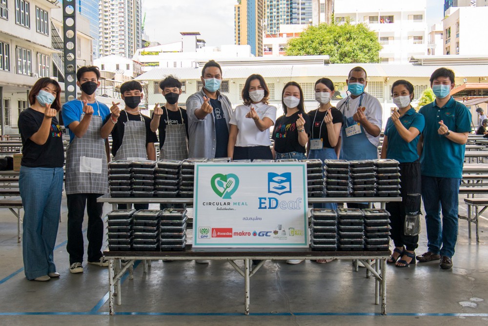 ที่ผ่านมา ซีพีเอฟ ร่วมมือกับบริษัทในกลุ่มเครือข่าย Circular Meal…. มื้อนี้ เปลี่ยนโลก อาทิ บริษัท โกลบอล เคมิคอล จำกัด (มหาชน) บริษัท สยามแม็คโคร จำกัด (มหาชน) บริษัท ซี.พี อินเตอร์เทรด จำกัด (ข้าวตราฉัตร) บริษัท จีอีพีพี สะอาด จำกัด สนับสนุนโครงการ Education for the Deaf ( EDeaf) สนับสนุนการเรียนรู้ของน้องๆ ในโครงการ EDeaf ซึ่งปีนี้ กลุ่มเชฟอาสาของซีพีเอฟร่วมปรุงอาหารกลางวัน โดยใช้วัตถุดิบอาหารส่วนเกินจากโรงงานต่างๆ เช่น ไส้กรอกไก่ ไก่ปรุงสุกแช่แข็ง เป็ดพะโล้ เพื่อมอบให้กับน้องๆ ผู้บกพร่องทางการได้ยิน และกลุ่มอาสาสมัคร