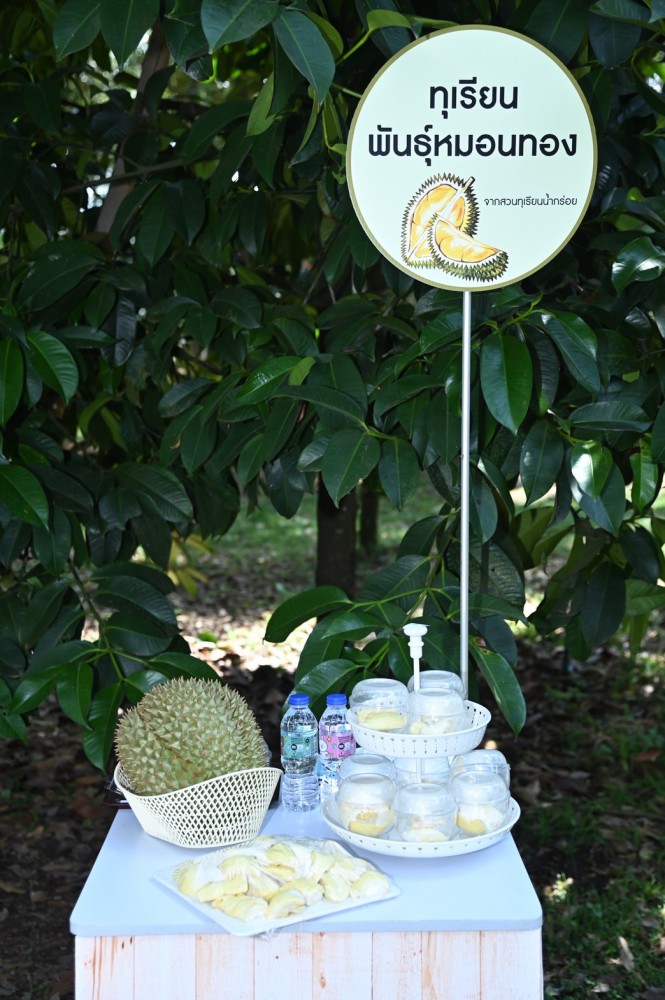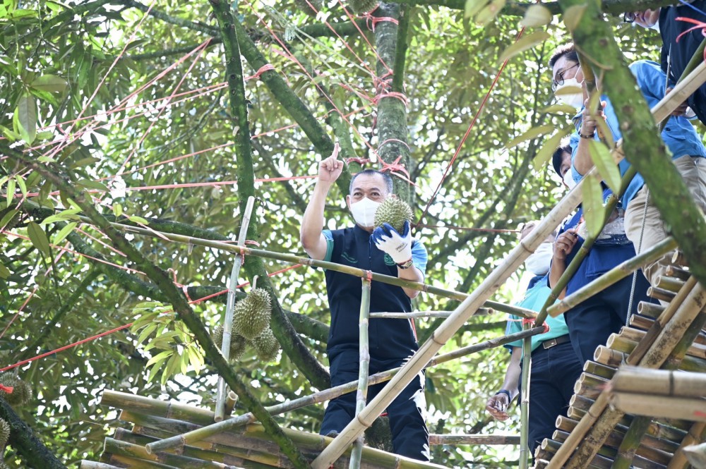 โอกาสนี้ รมว.เกษตรฯ ได้ร่วมขึ้น sky walk เพื่อตัดทุเรียนพร้อมจำหน่าย ร่วมกับอธิบดีกรมส่งเสริมเกษตร นายธีรพัฒน์ อุ่นใจ ที่ปรึกษาสมาพันธุ์ชาวสวนทุเรียนไทยภาคตะวันออกและเกษตรกรดีเด่น พร้อมกับแกะทุเรียนเพื่อเป็นการแสดงสัญลักษณ์ประชาสัมพันธ์งาน “Eastern Monthong Best Quality เปิดฤดูกาลทุเรียนหมอนทองตะวันออก ดีเลิศที่คุณภาพ ดีเยี่ยมเพื่อส่งออก”