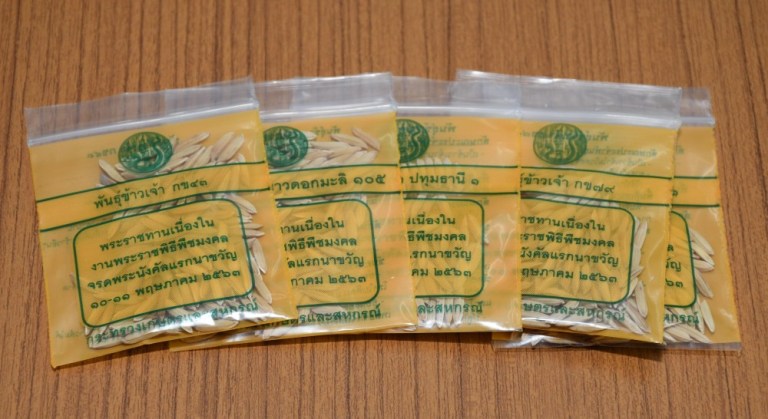 ทั้งนี้เมล็ดพันธุ์ข้าวเปลือกที่นำเข้าในพระราชพิธีมีน้ำหนักรวมทั้งสิ้น 1,728 กิโลกรัม และจัดเป็น “พันธุ์ข้าวทรงปลูกพระราชทาน” บรรจุในซองพลาสติกแจกจ่ายให้บรรดาพสกนิกร ประชาชนผู้สนใจ และชาวนาทั่วประเทศรับไปเป็นมิ่งขวัญและสิริมงคลในการประกอบอาชีพการเกษตรตามประเพณีนิยม เพื่อให้เป็นไปตามพระราชประสงค์สืบไป