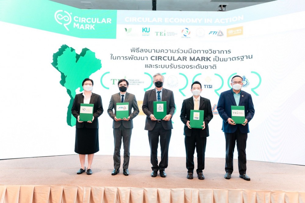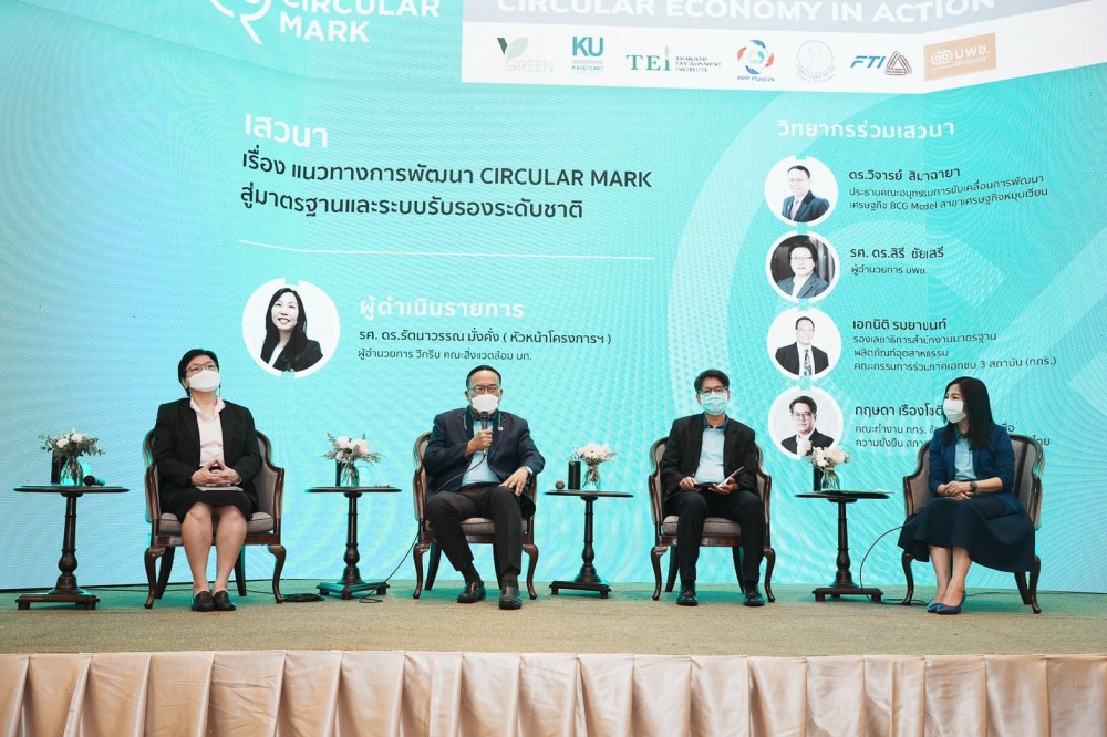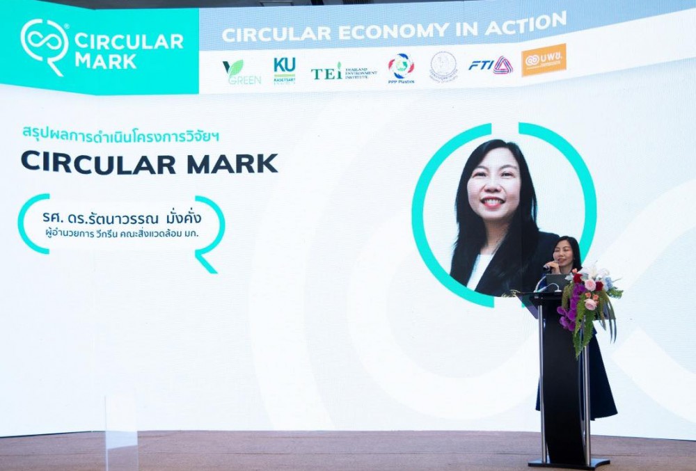 ศูนย์เชี่ยวชาญเฉพาะทางด้านกลยุทธ์ธุรกิจที่เป็นมิตรต่อสิ่งแวดล้อม หรือ VGREEN (วีกรีน) คณะสิ่งแวดล้อม มหาวิทยาลัยเกษตรศาสตร์ ได้เปิดตัว CIRCULAR MARK, CIRCULAR ECONOMY IN ACTION พร้อมมีพิธีลงนามความร่วมมือทางวิชาการในการพัฒนา CIRCULAR MARK เป็นมาตรฐาน และระบบรับรองระดับชาติ เพื่อสร้างความน่าเชื่อถือและเป็นที่ยอมรับทั้งในและต่างประเทศ ระหว่างมูลนิธิสถาบันสิ่งแวดล้อมไทย (มสท.) สำนักงานมาตรฐานผลิตภัณฑ์อุตสาหกรรม (สมอ.) กรมอุตสาหกรรมพื้นฐานและการเหมืองแร่ (กพร.) สภาอุตสาหกรรมแห่งประเทศไทย (สอท.) หน่วยบริหารและจัดการทุนด้านการเพิ่มความสามารถในการแข่งขันของประเทศ (บพข.) รวมทั้งเปิดตัว 30 บริษัทนำร่อง 376 ผลิตภัณฑ์ ซึ่งเป็นกลุ่มแรกของประเทศไทย ที่ได้รับการรับรองผลิตภัณฑ์หมุนเวียนและได้รับฉลาก CIRCULAR MARK