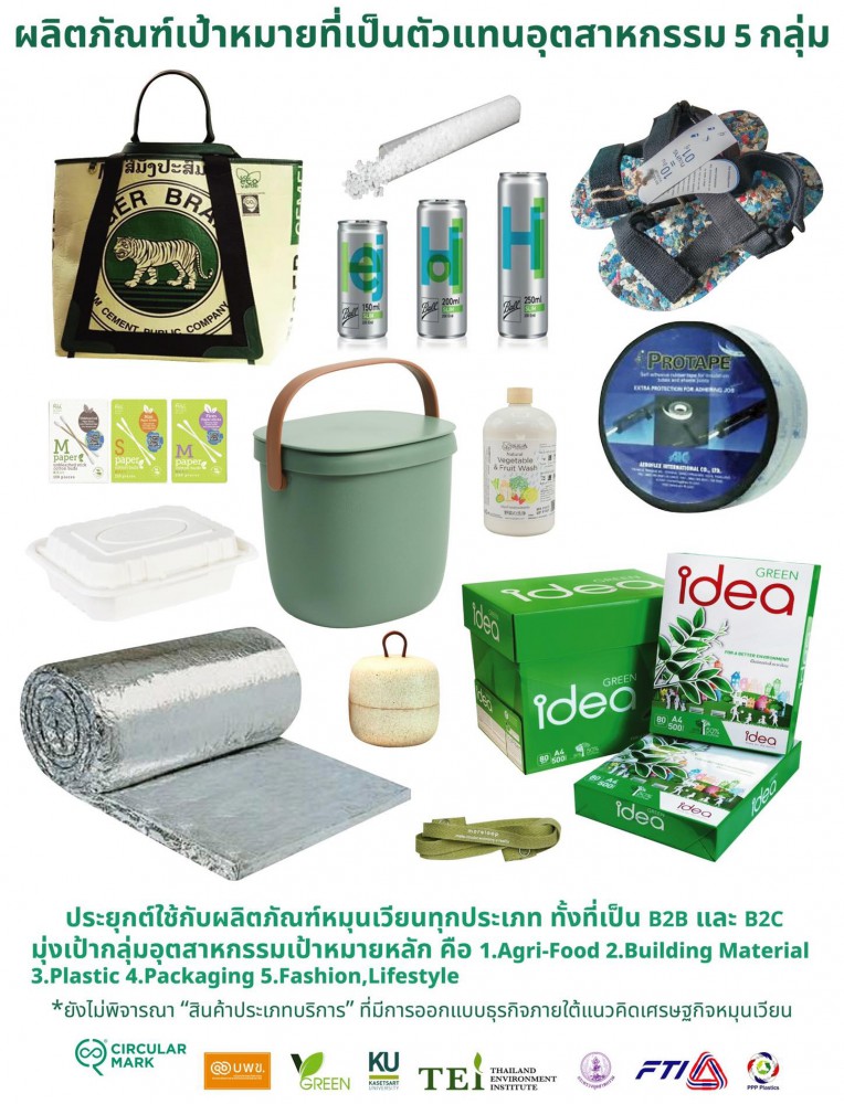 สำหรับ CIRCULAR MARK หรือ ฉลากผลิตภัณฑ์หมุนเวียน พัฒนาครั้งแรกในโลก โดยประเทศไทย นั้น มีการพิจารณาข้อกำหนดจากประเด็นปัญหาการหมุนเวียนวัสดุ การปล่อยก๊าซเรือนกระจก และ ผลกระทบต่อสิ่งแวดล้อมด้านอื่น ๆ โดยตลอดวัฏจักรชีวิตของผลิตภัณฑ์ มุ่งเป้าส่งเสริมการใช้วัสดุอย่างคุ้มค่า หมุนเวียนสู่ระบบเพื่อสร้างมูลค่าทางเศรษฐกิจ ลดปริมาณขยะที่ถูกนำไปกำจัดด้วยการฝังกลบ และ ลดปริมาณการปล่อยก๊าซเรือนกระจก รวมทั้ง ผลกระทบต่อสิ่งแวดล้อมด้านอื่น ๆ ช่วยสร้างคุณภาพสิ่งแวดล้อมและคุณภาพชีวิตที่ดีให้กับสังคมไทยและประชาคมโลก โดยเน้น 5 กลุ่มอุตสาหกรรมเป้าหมาย คือ เกษตรอาหาร วัสดุก่อสร้าง พลาสติก บรรจุภัณฑ์ และแฟชั่นไลฟ์สไตล์