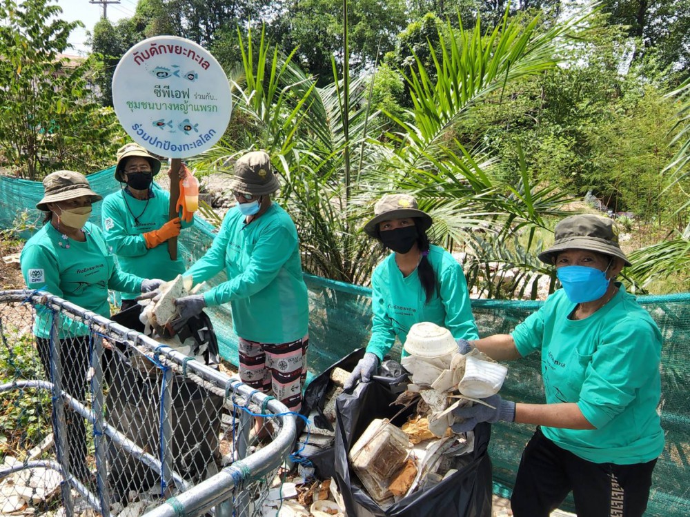 ซีพีเอฟ นำร่อง”โครงการกับดักขยะทะเล” (Trap the sea Trash) โดยร่วมมือกับ ชุมชนต.บางหญ้าแพรก อ.เมือง จ.สมุทรสาคร หมู่ที่ 4 หมู่ที่ 5 และหมู่ที่ 6 และเทศบาลตำบลบางหญ้าแพรกสร้างการมีส่วนร่วมกับชุมชน ลดการทิ้งขยะ เก็บ ดักขยะ ในคลองสาธารณะ ของตำบลบางหญ้าแพรก ก่อนไหลลงสู่แม่น้ำบริเวณปากอ่าวและทะเลอ่าวไทยตอนบน เพื่อช่วยลดปริมาณขยะที่ไหลลงสู่ทะเล ควบคู่ไปกับส่งเสริมการบริหารจัดการขยะทะเล ตามแนวทาง 3R คือ ลดการใช้ (Reduce) นำกลับมาใช้ซ้ำ (Reuse) นำกลับมาใช้ใหม่ (Recycle) สนับสนุนการสร้างมูลค่าเพิ่มตามแนวทางเศรษฐกิจหมุนเวียน (Circular Economy) ให้ชุมชนมีรายได้ จากการนำขยะไปใช้ประโยชน์ได้มากขึ้นและถูกวิธี