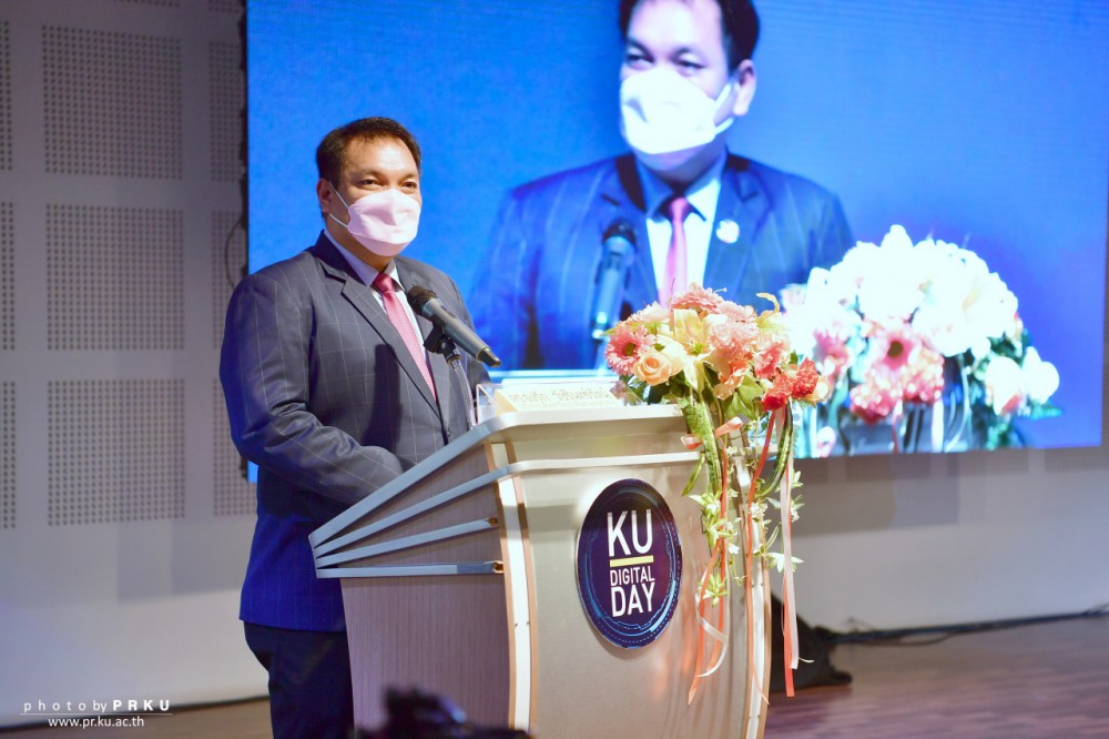 ดร.จงรัก วัชรินทร์รัตน์ อธิการบดีมหาวิทยาลัยเกษตรศาสตร์ กล่าวภายหลังเป็นประธานเปิดงาน KU Digital Day : ต้นแบบสังคมแห่งการเรียนรู้ เพื่อยกระดับคุณภาพชีวิต สังคมและชุมชน เฉลิมฉลองครบรอบ 80 ปี แห่งการสถาปนามหาวิทยาลัยเกษตรศาสตร์ เพื่อเปิดคลังความรู้นำผลงาน Digital Platform ที่โดดเด่นและใช้งานได้จริงว่า ตามพันธกิจของมหาวิทยาลัยที่มุ่งเน้นสร้างองค์ความรู้จากงานวิจัย นวัตกรรม และถ่ายทอดเทคโนโลยีเพื่อการพัฒนาและเพิ่มขีดความสามารถในการแข่งขันของประเทศ รวมทั้งสร้างต้นแบบสังคมแห่งการเรียนรู้ เพื่อยกระดับคุณภาพชีวิต สังคมและชุมชน ในโอกาสเฉลิมฉลองครบรอบ 80 ปี แห่งการสถาปนามหาวิทยาลัยเกษตรศาสตร์