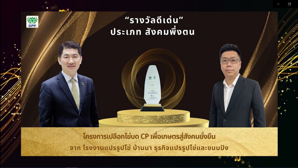 การมอบรางวัลในครั้งนี้ เป็นปีแรกที่มีการพิจารณา CSR Pitching Contest 2021 เพื่อมอบเงินรางวัลให้โครงการนำไปต่อยอดให้เกิดผลเป็นรูปธรรม รางวัลระดับ Gold Pitch ได้แก่ โครงการ “น้ำดื่มชุมชน” จากโรงเพาะฟักลูกกุ้ง (ตราด) ธุรกิจสัตว์น้ำ รางวัลระดับ Bronze Pitch ได้แก่ โครงการ Waste to Value… สู่ธนาคาร (ขยะ) รักษ์โลก จากโรงเพาะฟักลูกกุ้ง (ตราด) ธุรกิจสัตว์น้ำ รางวัล Popular Pitch 4 โครงการ ได้แก่ โครงการปุ๋ยอินทรีย์นาโนสู่การท่องเที่ยว “บ้านธรรมชาติล่างโมเดล” จากโรงเพาะฟักลูกกุ้ง (ตราด) ธุรกิจสัตว์น้ำ โครงการฟื้นฟูสมรรถภาพผู้สูงวัยชุมชนเวียงยอง ด้วยกายอุปกรณ์ ธุรกิจอาหารสัตว์บก โครงการแหล่งเรียนรู้ ซีพีเอฟ อิ่มสุขปลูกอนาคต : โรงเรียนบ้านลาดบัวขาว การผลิตอาหารตามแนวทางเศรษฐกิจพอเพียง ธุรกิจไก่เนื้อ และโครงการ CPF IMM SOOK Learning Center By Banmaisamrong school ธุรกิจไก่เนื้อ
