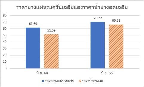 นายณกรณ์ ตรรกวิรพัท ผู้ว่าการการยางแห่งประเทศไทย เผยว่า ราคาน้ำยางสดในช่วงนี้มีการย่อตัวลงจากปลายสัปดาห์ที่ผ่านมา เป็นช่วงปรับฐานราคา แต่ยังสูงกว่าช่วงเดียวกันของปีก่อน โดยราคาน้ำยางสดเฉลี่ยในช่วงเดือนมิถุนายน 2564 อยู่ที่ 51.59 บาท/กก. ในขณะที่ราคาน้ำยางสดเฉลี่ยเดือนมิถุนายนปีนี้ (1-13 มิ.ย. 65) อยู่ที่ 66.28 บาท/กก. สูงกว่าปีที่แล้วประมาณ 10 บาท/กก.
