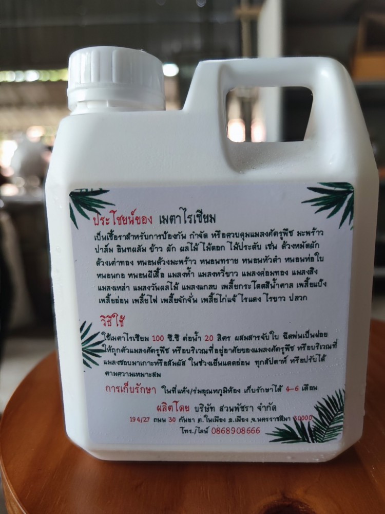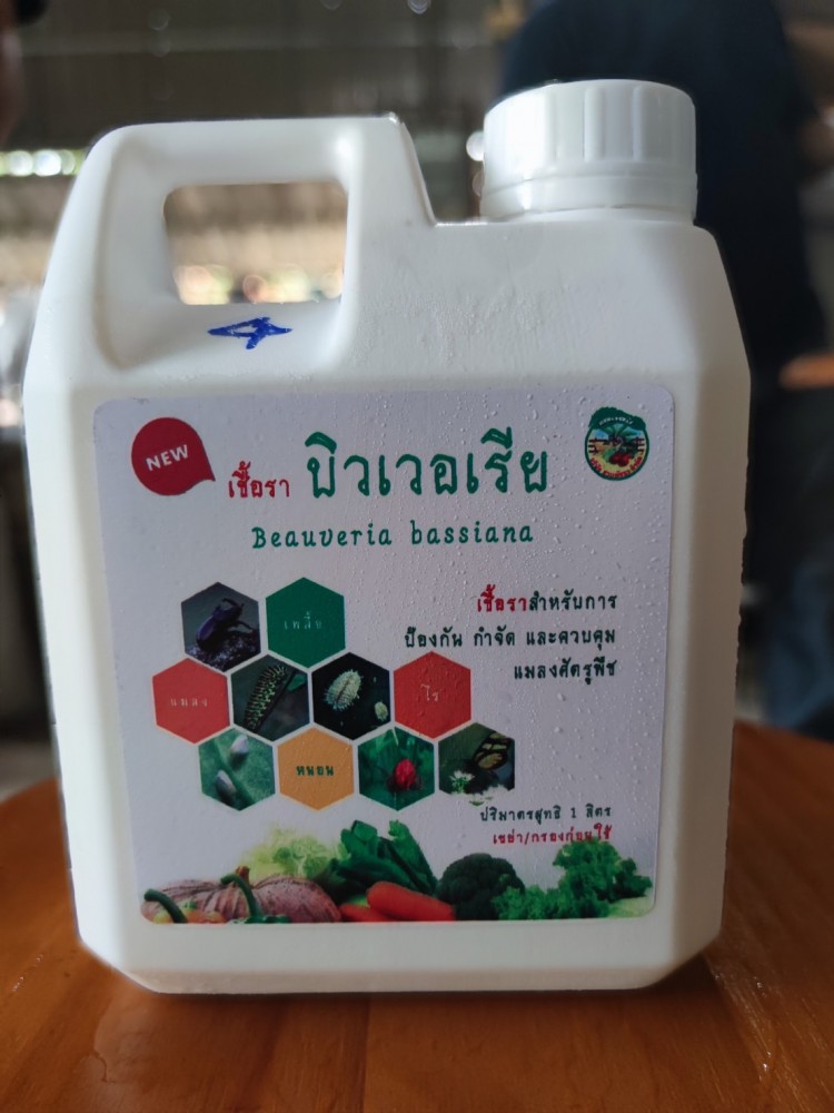 3. ผลิตภัณฑ์หัวเชื้อ เมตาไรเซียม สำหรับป้องกัน กำจัด และควบคุมแมลงศัตรูพืช ขนาดปริมาตร 1 ลิตร บรรจุในกระป๋องพลาสติก ทรงสี่เหลี่ยม สีขาว จำนวน 13 กระป๋อง 4. ผลิตภัณฑ์เชื้อราบิวเวอเรีย สำหรับป้องกัน กำจัด และควบคุมแมลงศัตรูพืช ขนาดปริมาตร 1 ลิตร บรรจุในกระป๋องพลาสติก ทรงสี่เหลี่ยม สีขาว จำนวน 17 กระป๋อง
