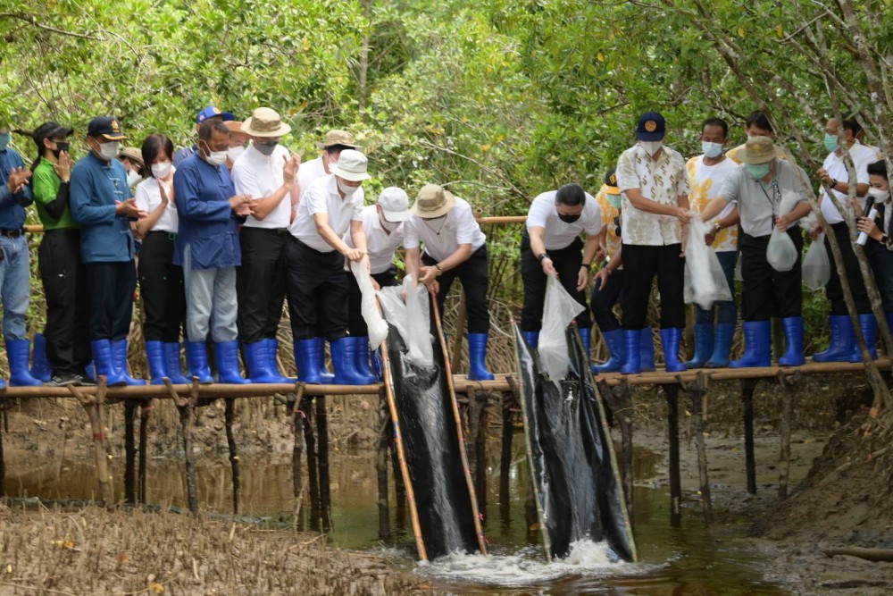 ไปเยี่ยมชมความสำเร็จของวิสาหกิจชุมชนท่องเที่ยวบ้านธรรมชาติล่าง จ.ตราด และวิสาหกิจชุมชนท่องเที่ยววิถีชุมชนตำบลปากน้ำประแส จ.ระยอง ซึ่งได้รับการสนับสนุนจากซีพีเอฟ ช่วยขับเคลื่อนเศรษฐกิจ สังคม และสิ่งแวดล้อมของท้องถิ่น พร้อมทั้งปลูกป่าชายเลน ปล่อยปลาและปูดำ เพื่อเพิ่มความหลากหลายทางชีวภาพ ในพื้นที่ ต.ท่าพริก อ.เมือง จ.ตราด ภายใต้การดำเนินโครงการอนุรักษ์และฟื้นฟูป่า “ปลูก ปัน ป้อง ป่าชายเลน” โดยได้รับเกียรติจาก นายชำนาญวิทย์ เตรัตน์ ผู้ว่าราชการจังหวัดตราด ร่วมด้วย