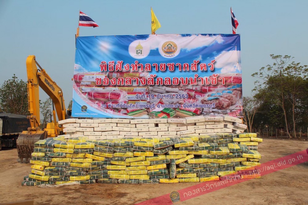 นอกจากนี้มีกรณีมีการดำเนินคดีกับผู้กระทำความผิดมีการจับกุม 280 ครั้ง และกรณีไม่มีผู้กระทำความผิดเป็นการยึดทำลาย 86 ครั้ง ซึ่งจากการดำเนินงานสะสมในปีงบ 2564-2565 นั้น กรมปศุสัตว์ได้ทำลายซากสัตว์รวมสะสมแล้วกว่าจำนวน 334,693 กิโลกรัม (ปีงบ 65 จำนวน 241,594 กิโลกรัมและปีงบ 64 จำนวน 93,099 กิโลกรัม) คิดเป็นมูลค่าของกลางรวมสะสมกว่า 21,891,215 บาท (ปีงบ 65 มูลค่า 17,841,005 บาท และปีงบ 64 มูลค่า 4,050,210 บาท)