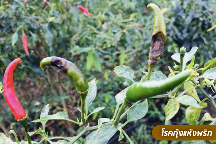 นอกจากนี้ ยังต้องเฝ้าระวังโรคแอนแทรคโนส หรือโรคกุ้งแห้ง โดยโรคนี้มักพบบนผลพริกที่เริ่มสุกหรือก่อนที่ผลพริกจะเปลี่ยนสี อาการเริ่มแรกเป็นจุดหรือแผลช้ำยุบตัวเล็กน้อย ต่อมาแผลขยายใหญ่ลักษณะเป็นวงรีหรือวงกลม บริเวณแผลพบส่วนของเชื้อราเป็นตุ่มสีดำขนาดเล็กเรียงเป็นวงซ้อนกัน ในสภาพที่อากาศชื้นจะเห็นเมือกเยิ้มสีส้มอ่อน ซึ่งเป็นกลุ่มสปอร์ของเชื้อราสาเหตุโรค ถ้าอาการรุนแรงจะทำให้ผลเน่า ผลพริกที่เป็นโรคนี้จะโค้งงอบิดเบี้ยวลักษณะคล้ายกุ้งแห้ง และร่วงก่อนเก็บเกี่ยว