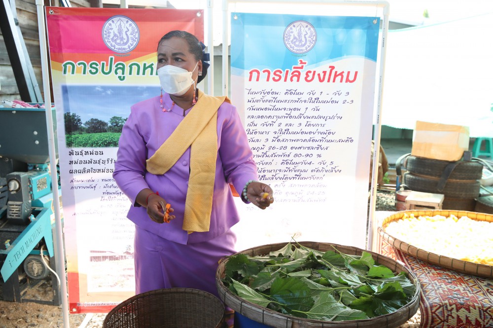 ทั้งนี้ในส่วนของชุมชนบ้านสนวนนอก เป็นชุมชนที่ ธ.ก.ส.เข้าไปมีส่วนร่วมการพัฒนาด้านอาชีพและการยกระดับเป็นชุมชนท่องเที่ยว โดยชุมชนมีจุดเด่นในเรื่องการเลี้ยงไหมและทอผ้าไหม ซึ่งดีป้าเข้ามาร่วมต่อยอดโดยนำเอาเทคโนโลยี IoT มาใช้ในการเปิด-ปิดน้ำคำนวณการใช้น้ำ การจ่ายปุ๋ยอัตโนมัติในแปลงปลูกใบหม่อนการตรวจสอบการเจริญเติบโตผ่านแอปพลิเคชัน พร้อมสั่งการระบบและติดตามการทำงานบนโทรศัพท์มือถือช่วยอำนวยความสะดวกในการดูแลผลผลิตที่จะนำมาเลี้ยงไหมได้ตลอดทั้งปี จากเดิมที่ต้นหม่อนจะให้ผลผลิตเฉพาะในช่วงหน้าฝนทำให้สมาชิกในชุมชนมีงานทำ มีรายได้เพิ่มมากขึ้น