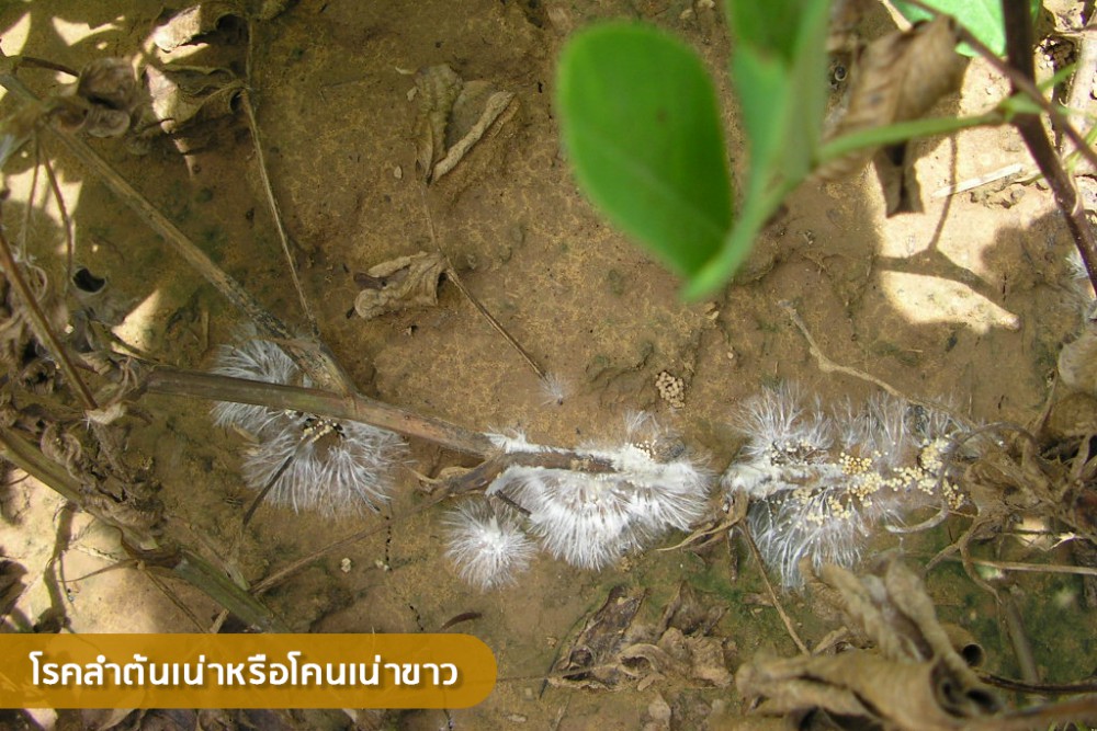นายศรุต กล่าวอีกว่า สำหรับถั่วลิสงซึ่งอยู่ในช่วงระยะออกดอกและติดฝัก ให้เฝ้าระวัง โรคลำต้นเน่าหรือโคนเน่าขาว โดยถั่วลิสงจะแสดงอาการเหี่ยวและยุบตัวเป็นหย่อม ๆ ในแปลงปลูก บริเวณโคนต้นเหนือดินพบแผลสีน้ำตาลและมีเส้นใยของเชื้อราสาเหตุโรคสีขาวลักษณะหยาบ ต่อมาเส้นใยของเชื้อราจะรวมตัวเป็นเม็ดเล็ก ๆ สีขาว แล้วเปลี่ยนเป็นสีน้ำตาลเข้มจนเกือบดำคล้ายเมล็ดผักกาด ต่อมาต้นจะแห้งและตาย โรคนี้พบได้ทุกระยะการเจริญเติบโตของถั่วลิสง แต่มักพบระบาดในระยะถั่วลิสงติดฝักถึงเก็บเกี่ยว
