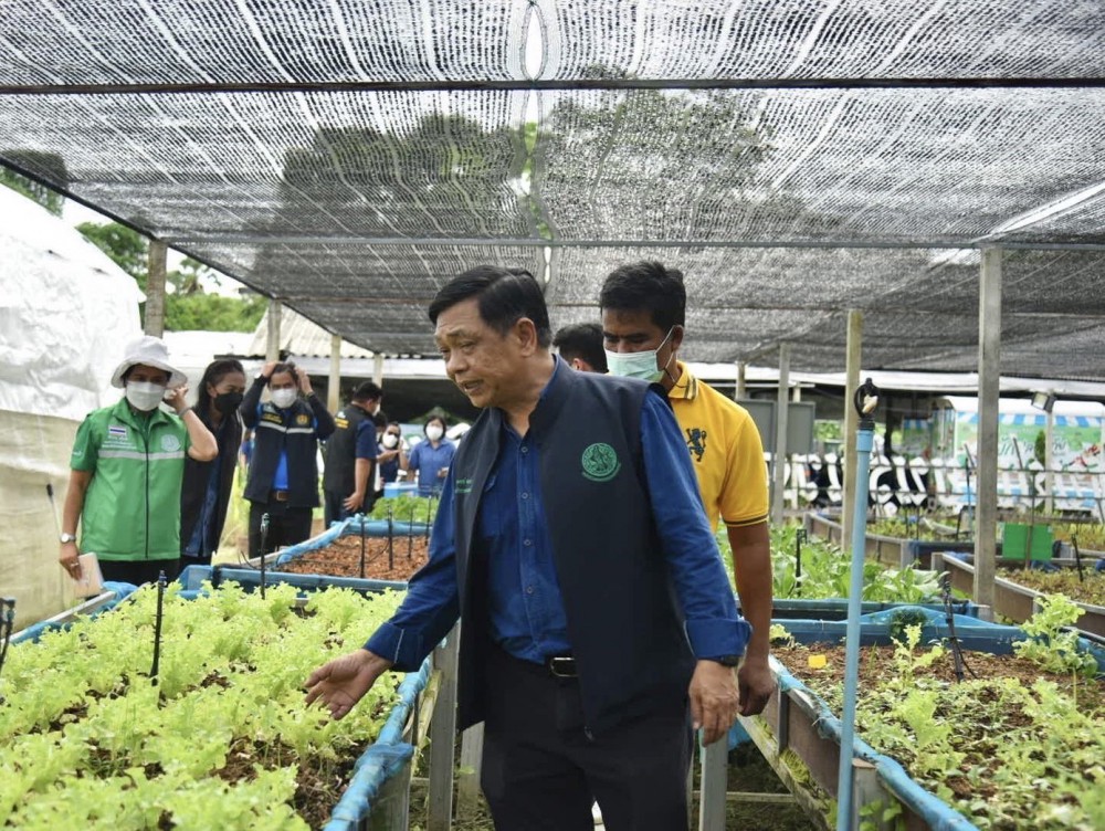 จากนั้นช่วงบ่าย ที่ปรึกษารัฐมนตรีเกษตรฯ และคณะ ได้ลงพื้นที่ติดตามการบริหารจัดการน้ำของ โครงการส่งน้ำและบำรุงรักษาเพชรบุรี สำนักงานชลประทานที่ 14 ในการขุดลอกผักตบชวาในคลองระบายน้ำ D25 ไปตรวจเยี่ยมความก้าวหน้าการดำเนินงานวิสาหกิจชุมชนเกษตรอินทรีย์วิถีพอเพียง ตำบลช่องสะแก อำเภอเมือง จังหวัดเพชรบุรีที่มีการปลูกผักเกษตรอินทรีย์ปลอดสารพิษแบบยกแคร่ (ผักสลัด) และแบบโรงเรือนอัจฉริยะ ซึ่งเป็นต้นแบบงานวิจัยในพื้นที่ ได้รับงบประมาณและการสนับสนุนจากสำนักงานพัฒนาวิทยาศาสตร์และเทคโนโลยีแห่งชาติ (สวทช. ) มหาวิทยาลัยราชภัฏเพชรบุรี สำนักงานเกษตรและสหกรณ์จังหวัด มีกิจกรรมการแปรรูปอาหารหลายอย่าง