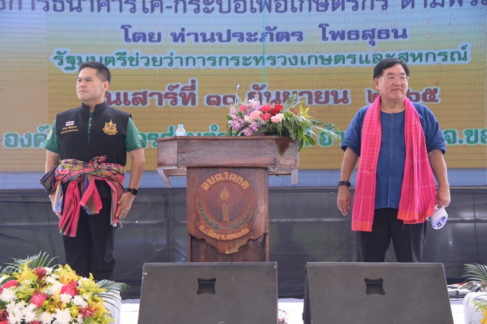 นายประภัตร โพธสุธน รัฐมนตรีช่วยว่าการกระทรวงเกษตรและสหกรณ์และลงพื้นที่ชี้แจงโครงการ “มีน้ำ = ไม่จน” เพื่อสานฝันสร้างอาชีพและ “โครงการสานฝันสร้างอาชีพและยกระดับรายได้เกษตรกร” พร้อมมอบวัว-ควาย ให้แก่เกษตรกรในโครงการธนาคารโค-กระบือ เพื่อเกษตรกรตามพระราชดำริ โดยมี นายวราวุธ ศิลปอาชา รัฐมนตรีว่าการกระทรวงทรัพยากรธรรมชาติและสิ่งแวดล้อมและคณะร่วมการลงพื้นที่ในโอกาสนี้ด้วย ณ องค์การบริหารส่วนตำบลบ้านโนน อ.ชำสูง และองค์การบริหารส่วนตำบลโคกสี อ.เมือง จ.ขอนแก่น