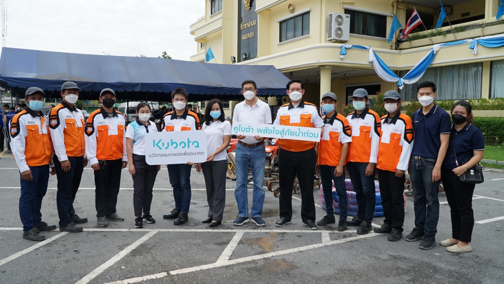 โดยมี นายอำนวย อภิชัยนันท์ ผู้จัดการฝ่ายทรัพยากรบุคคลและบริหาร บริษัทสยามคูโบต้าคอร์ปอเรชั่น จำกัด นำทีมผู้บริหารและช่างบริการสยามคูโบต้าที่มีจิตอาสา ร่วมส่งมอบให้กับ นายนิติชัย วิริยานนท์ นายอำเภอคลองหลวง เพื่อแจกจ่ายให้กับองค์การบริหารส่วนตำบลในพื้นที่ที่ต้องการความช่วยเหลืออย่างเร่งด่วน ณ ที่ทำการอำเภอคลองหลวง จังหวัดปทุมธานี เมื่อวันที่ 10 กันยายน 2565
