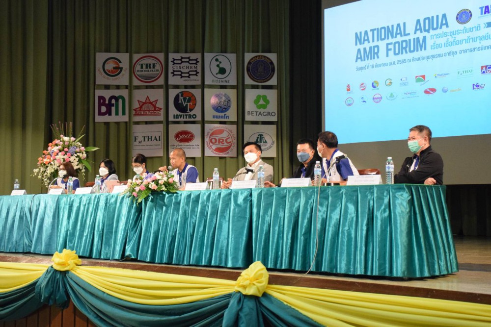 ในส่วนของภาคการเพาะเลี้ยงสัตว์น้ำกรมประมงร่วมกับสมาคมการค้าปัจจัยการผลิตสัตว์น้ำไทยจัดงานประชุมระดับชาติ เรื่อง เชื้อดื้อยาต้านจุลชีพในการเพาะเลี้ยงสัตว์น้ำหรือ National Aqua AMR Forum เพื่อนำเสนอผลการดำเนินการและผลลัพธ์ที่สำคัญให้กับบุคลากรจากหน่วยงานภาครัฐเกษตรกรผู้เพาะเลี้ยงสัตว์น้ำและผู้ประกอบการที่เกี่ยวข้องกับการดำเนินงานภายใต้ยุทธศาสตร์การจัดการเชื้อดื้อยาต้านจุลชีพของประเทศไทย พ.ศ. 2560–2565 ตลอดจนเป็นเวทีสำหรับแลกเปลี่ยนองค์ความรู้และสร้างเครือข่ายความร่วมมือเกี่ยวกับการใช้ยาต้านจุลชีพอย่างสมเหตุผลในการเพาะเลี้ยงสัตว์น้ำระหว่างภาคส่วนต่างๆทั้งภาครัฐและภาคเอกชนเพื่อลดความเสี่ยงของปัญหาเชื้อดื้อยาต้านจุลชีพในการเพาะเลี้ยงสัตว์น้ำ