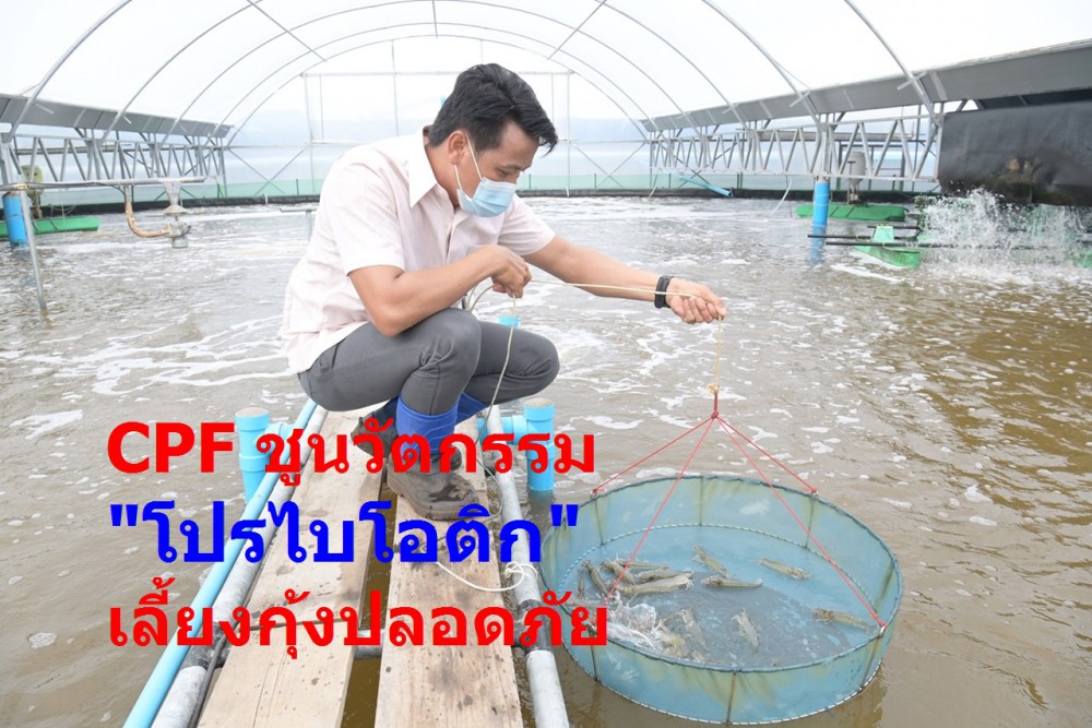 นักวิชาการค่าย ซีพีเอฟ นำนวัตกรรมการเลี้ยงกุ้งด้วยจุ ลินทรีย์ “โปรไบโอติก” ช่วยเสริมสร้างภูมิต้านทานให้กุ้ งแข็งแรงปลอดโรค ปลอดภัย ปลอดการใช้ยาปฏิชีวนะ ไร้สารตกค้าง เป็นแนวทางการเลี้ยงกุ้งที่ยั่ งยืน เป็นมิตรต่อสิ่งแวดล้อม นำไปสู่การผลิตอาหารปลอดภัยที่ มีคุณภาพส่งถึงผู้บริโภค