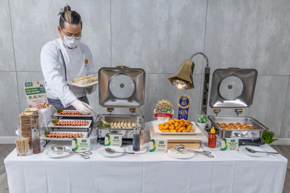 “Meat Zero“ นวัตกรรมเนื้อจากพืช หรือ Plant Base ที่เป็นโปรตีนทางเลือกและอาหารแห่งอนาคต ที่มีเนื้อสัมผัส สีสัน และรสชาติเสมือนเนื้อสัตว์จริง ปราศจากคอเลสเตอรอล มีโปรตีนและไฟเบอร์สูง เหมาะกับผู้รักสุขภาพและใส่ใจสิ่งแวดล้อม เพราะลดขั้นตอนการเลี้ยงสัตว์ในฟาร์ม ด้วยการนำเทคโนโลยีที่ทันสมัยและนวัตกรรมขั้นสูงมาใช้ในกระบวนการผลิต โดยนำเสนอในรูปแบบอาหารวีแกนหลากหลายเมนู ได้แก่ นักเก็ต เกี๊ยวซ่า โบโลน่า และ ข้าวตังมัสมั่น