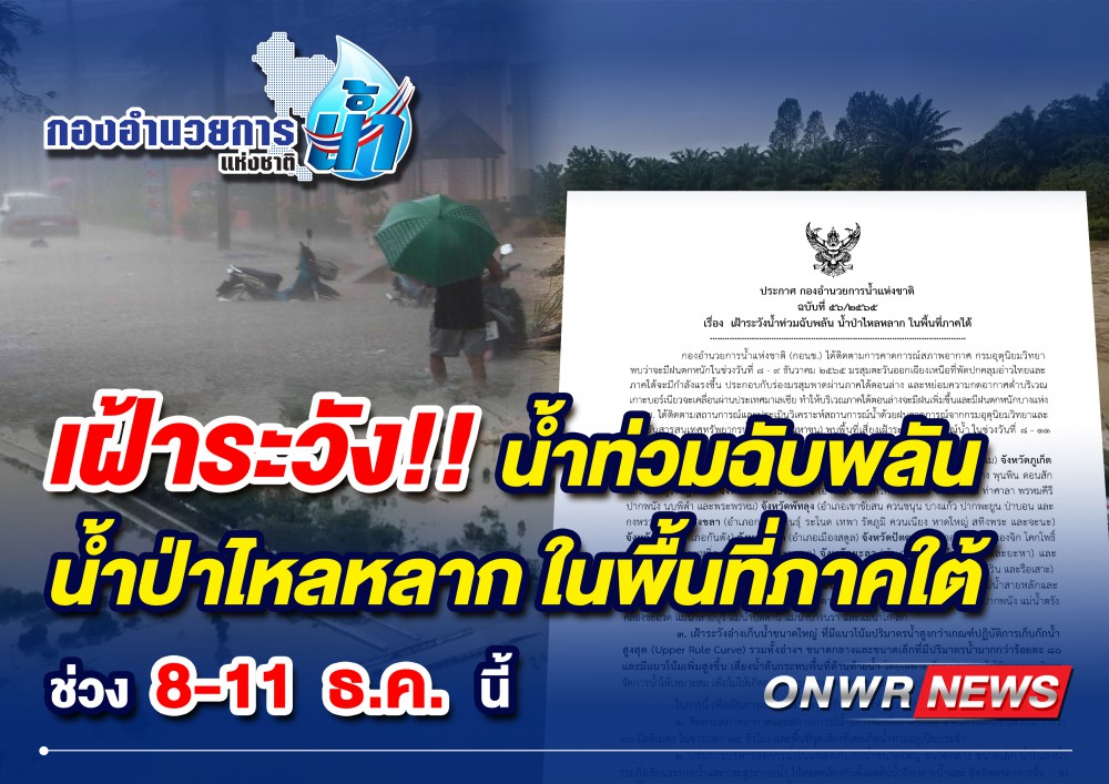 เรื่อง เฝ้าระวังน้ำท่วมฉับพลัน น้ำป่าไหลหลาก ในพื้นที่ภาคใต้