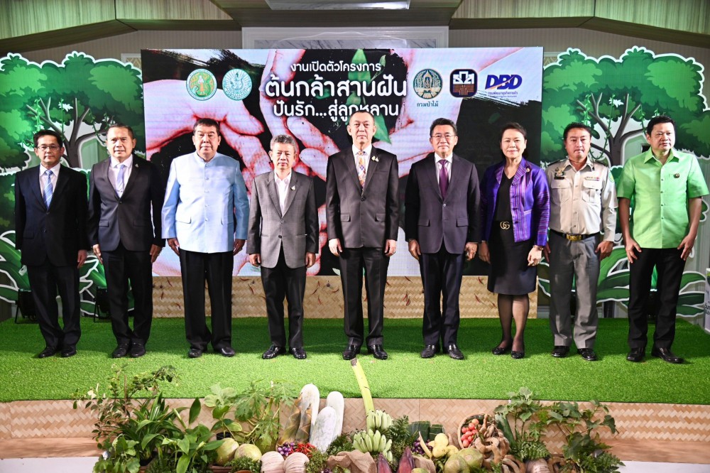 ด้าน นายเข้มแข็ง ยุติธรรมดำรง อธิบดีกรมส่งเสริมการเกษตร กล่าวเพิ่มเติมว่า กรมส่งเสริมการเกษตรนำหลักการและแนวคิดตามนโยบายของ นายเฉลิมชัย ศรีอ่อน รัฐมนตรีว่าการกระทรวงเกษตรและสหกรณ์ มาต่อยอดเป็นโครงการ “ต้นกล้าสานฝันปันรัก…สู่ลูกหลาน” โดยมีเกษตรกรเป้าหมาย จำนวน 27,537 ราย ประกอบด้วย เกษตรกรตามโครงการปรับเปลี่ยนพื้นที่ทำการเกษตรไม่เหมาะสม จำนวน 1,000 ราย ศูนย์เรียนรู้การเพิ่มประสิทธิภาพการผลิตสินค้าเกษตรต้นแบบ จำนวน 77 แห่ง และสมาชิกศูนย์เรียนรู้การเพิ่มประสิทธิภาพการผลิตสินค้าเกษตร จำนวน 26,460 ราย