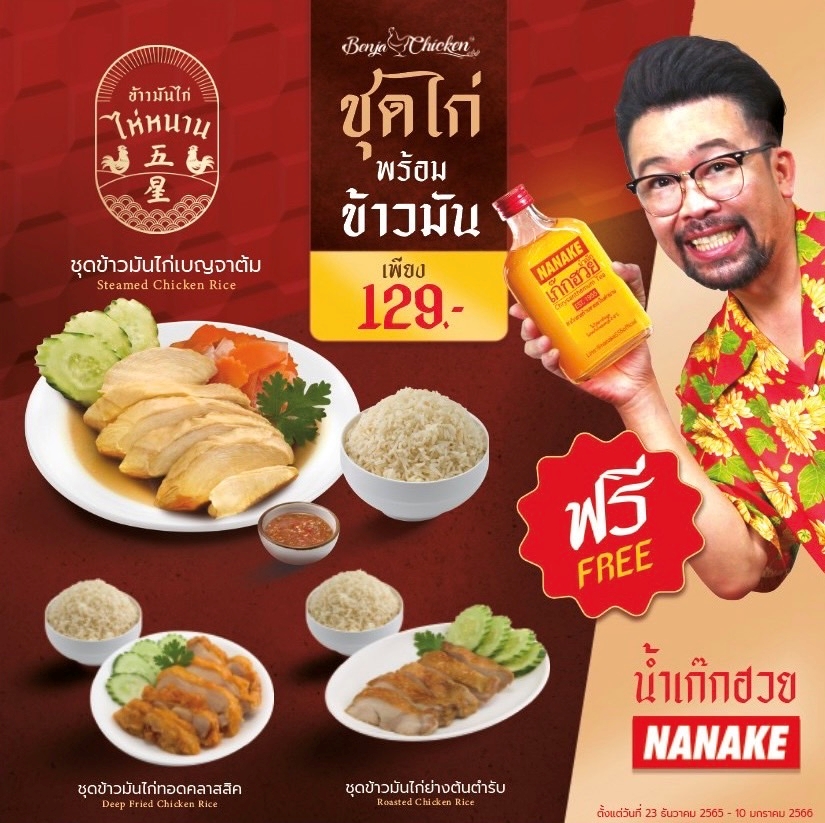 ธุรกิจห้าดาว (Five Star) เปิดร้าน ‘ข้าวมันไก่ไห่หนาน‘ (Hainanese Chicken Rice) ในทำเลสุดฮอต สาขาศูนย์ประชุมแห่งชาติสิริกิติ์ ศูนย์กลางแห่งงานประชุมระดับโลก รังสรรค์เมนูหลากหลายด้วยวัตถุดิบระดับพรีเมียม ‘ไก่เบญจา‘ สุดยอดนวัตกรรมอาหารที่เลี้ยงด้วยข้าวกล้อง แก่ผู้คนทั่วทุกมุมโลกที่มาเยือน โดยมี นายสุนทร จักษุกรรฐ์ กรรมการผู้จัดการ ธุรกิจห้าดาว และนายณัฐยุทธ รามสูตร ผู้อำนวยการ บริษัท เอ็น.ซี.ซี. แมนเนจเม้นท์ แอนด์ ดิเวลลอปเม้นท์ จำกัด ตัวแทนศูนย์ประชุมแห่งชาติสิริกิติ์ ร่วมแสดงความยินดีกับ นางพรพิมล-นายอัครวุฒิ อัคราเดชาวุฒิ เจ้าของร้าน