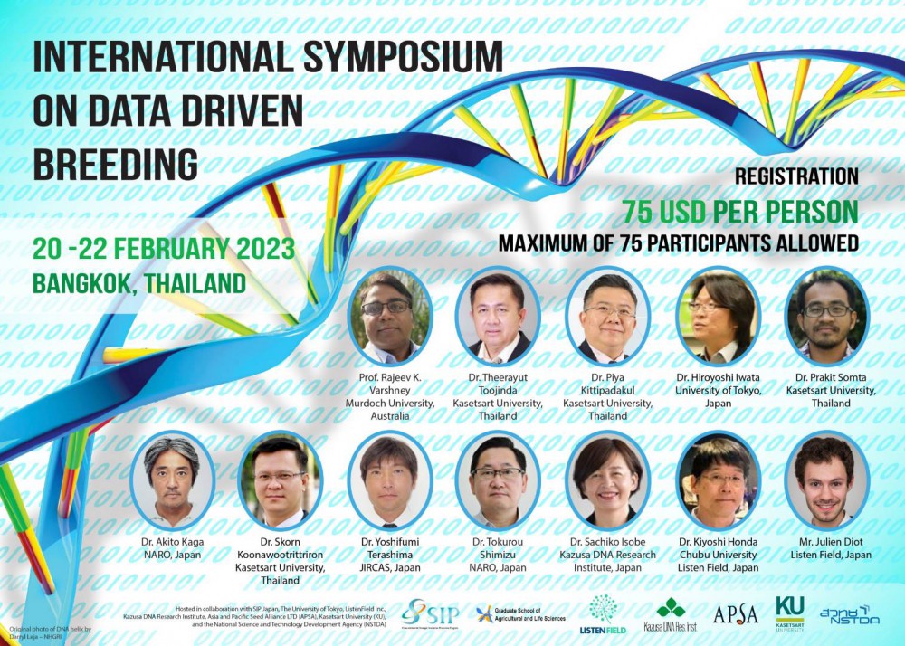 สมาคมเมล็ดพันธุ์พืชภาคพื้นเอเชียและแปซิฟิค (APSA) ร่วมกับ Kazusa DNA Research Institute, University of Tokyo และ ListenField ประเทศญี่ปุ่น สำนักงานพัฒนาวิทยาศาสตร์และเทคโนโลยีแห่งชาติ (สวทช.) และมหาวิทยาลัยเกษตรศาสตร์ ประเทศไทย ร่วมจัดสัมมนาหัวข้อ International Symposium on Data Driven Breeding ในวันที่ 20-22 กุมภาพันธ์ พ.ศ. 2566 ณ โรงแรมมิราเคิล แกรนด์ กรุงเทพมหานคร