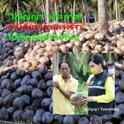 “มนัญญา” สตาร์ทเครื่องเดินหน้าทวงราคามะพร้าวคืนให้เกษตรกรไทย หลังตรวจพบสาเหตุที่ราคามะพร้าวภายในประเทศเกิดจาก‘นำเข้ากะทินอก และมะพร้าวผลนอกโควต้า ถามราคากะทิในท้องตลาด อยู่ที่ กก.ละ 70 บาท ขณะที่ราคารับซื้อมะพร้าวจากชาวสวนผลละ 5 – 12 บาท ส่วนต่างของราคานี้หายไปไหน?