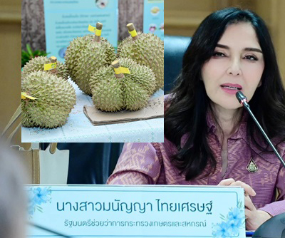 วันที่ 28 ก.พ. 2566 นางสาวมนัญญา ไทยเศรษฐ์ รัฐมนตรีช่วยเตือนกระทรวงเกษตรและปราศรัยบอกให้เป็นประธานการประชุม ฟอร์มปี 2566 แก่กลุ่มผู้บริหารและนายด่านตรวจพืชก่อนวิชาการเกษตร และที่ Zoom Cloud Meeting ณ อาคารใหญ่ศูนย์ปฏิบัติขั้นพื้นฐานและถ่ายทอดก่อนการประชุมเทคโนโลยีวิชาการเกษตรว่าซีมันผลิตทุเรียนปี 2566 นี้ ประเทศไทยจะเปิดโอกาสให้ ปีทุเรียนไทยคุณภาพ ยินดีต้อนรับตลาดส่งออกทุเรียนเพื่อขอให้ไทยมีคู่แข่งได้มากขึ้น