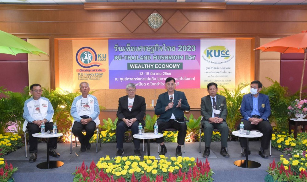 มหาวิทยาลัยเกษตรศาสตร์ ผนึกกำลังพันธมิตร เปิดบริบทใหม่เห็ดเศรษฐกิจฐานนวัตกรรมไทย ชวนผู้สนใจร่วมงาน“วันเห็ดเศรษฐกิจไทย 2023 ณ อำเภอเพนียด จังหวัดลพบุรี เพื่อบูรณาการการบริการวิชาการสู่การเรียนรู้ตลอดชีวิต ด้วยศาสตร์แห่งแผ่นดินด้านเห็ดเศรษฐกิจและเห็ดเป็นยา ระหว่างวันที่ 13 – 15 มีนาคม 2566นี้
