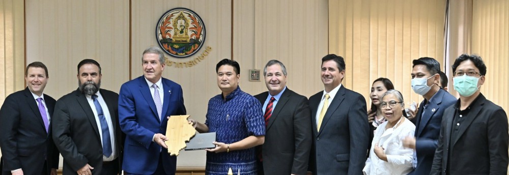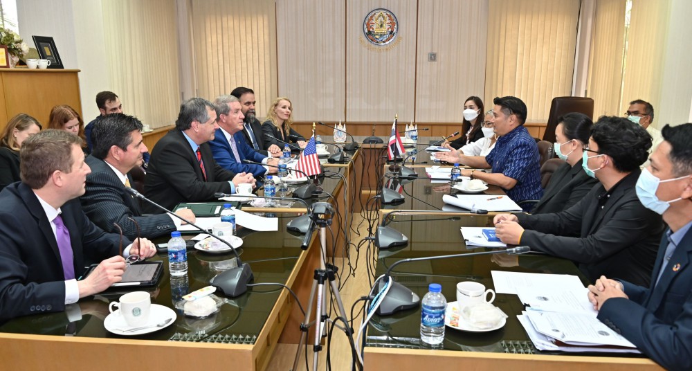 นายระพีภัทร์ จันทรศรีวงศ์ อธิบดีกรมวิชาการเกษตร ให้การต้อนรับ นายฮิวจ์ เวทเธอร์ส (Mr. Hugh Weathers) Commissioner, South Carolina Department of Agriculture National Association of State Department of Agriculture (NASDA) พร้อมคณะผู้แทนจาก NASDA และสถานทูตสหรัฐอเมริกาประจำประเทศไทย ในโอกาสเข้าเยี่ยมคารวะ หารือยกระดับความสัมพันธ์ทวิภาคี และขยายความร่วมมือทางการค้าสินค้าเกษตรและการลงทุนภาคการเกษตร โดยหารือประเด็นที่สำคัญ ได้แก่ การส่งเสริมการค้าสินค้าเกษตรไทย-สหรัฐ ความร่วมมือในด้านเทคโนโลยีนวัตกรรมทางการเกษตร การเปลี่ยนแปลงสภาพภูมิอากาศ การลดการปล่อยก๊าซเรือนกระจกในภาคเกษตร และ การส่งออกผลไม้สด