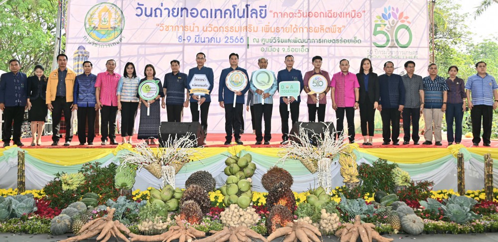 “สำนักวิจัยและพัฒนาการเกษตรเขตที่ 3 และเขตที่ 4 และหน่วยงานกรมวิชาการเกษตร ที่ตั้งอยู่ในพื้นที่ภาคตะวันออกเฉียงเหนือ รวมทั้งหน่วยงานสังกัดกระทรวงเกษตรและสหกรณ์ ในจังหวัดร้อยเอ็ด ได้ร่วมกันจัดงานวันถ่ายทอดเทคโนโลยีการผลิตพืชเพื่อร่วมเฉลิมฉลองเนื่องในโอกาสที่กรมวิชาการเกษตร ได้รับการสถาปนาครบรอบ 50 ปี โดยตลอดระยะเวลาที่ผ่านมากรมวิชาการเกษตรได้ผลิตผลงานวิจัย ด้านพันธุ์พืช และเทคโนโลยีการเกษตรที่มีคุณค่า และเป็นประโยชน์ต่อการพัฒนาการเกษตรของประเทศไทยเป็นจำนวนมาก ดังนั้นจึงได้จัดงานในครั้งนี้ขึ้นเพื่อเผยแพร่ผลงานวิชาการ ตลอดจนบทบาทหน้าที่ของหน่วยงานกรมวิชาการเกษตรให้สาธารณชนได้รับทราบอย่างกว้างขวาง โดยมีเกษตรกร นักเรียน นักศึกษา และผู้สนใจ เข้าร่วมชมงานประมาณ 1,000 คน ขอเชิญชวนผู้ที่สนใจสามารถเข้าร่วมชมงานได้ตั้งแต่วันที่ 8 – 9 มีนาคม 2566 ณ ศูนย์วิจัยและพัฒนาการเกษตรร้อยเอ็ด อำเภอเมือง จังหวัดร้อยเอ็ด” อธิบดีกรมวิชาการเกษตร กล่าว