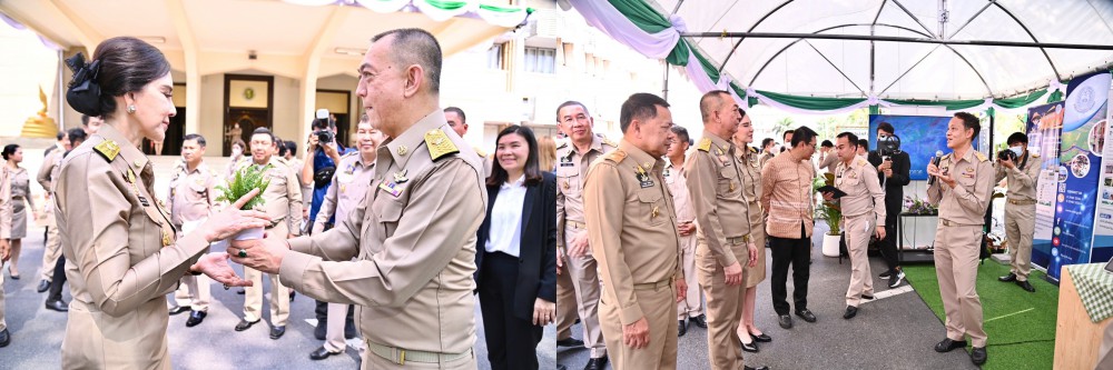 จากนั้นรัฐมนตรีว่าการกระทรวงเกษตรและสหกรณ์ เป็นประธานในพิธีมอบต้นไม้ลดฝุ่นละอองภายใต้โครงการ Green City by MOAC ของกระทรวงเกษตรและสหกรณ์ ให้กับหัวหน้าส่วนราชการ รัฐวิสาหกิจในสังกัด และผู้บริหารองค์การมหาชนในกำกับของกระทรวงเกษตรและสหกรณ์ จำนวน 22 หน่วยงาน เพื่อประชาสัมพันธ์และรณรงค์ให้เกิดความร่วมมือในการแก้ไขปัญหามลพิษจากฝุ่นละออง ณ บริเวณโถงหน้ามุก (ฝั่งกองกลาง) ทั้งนี้ ภายในงานได้มีการแจกจ่ายต้นไม้ให้กับผู้เข้าร่วมชมงานและประชาชนทั่วไป (จำนวน 1 ต้น/คน) ได้แก่ ไม้ตระกูลคล้า ไม้ตระกูลเฟิร์น และเศรษฐีเรือนใน รวมจำนวน 1,118 ต้น โดยสามารถลงทะเบียนรับต้นไม้ ณ บูธกิจกรรม