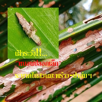 กรมส่งเสริมการเกษตร เตือนชาวสวนมะพร้าว-ปาล์มน้ำมัน ให้เฝ้าระวัง “หนอนปลอกเล็ก” หลังพบระบาดแล้วกว่า 2 ,000 ไร่ ในพื้นที่จังหวัดสุราษฎร์ธานีและชุมพร ชี้มหันตภัยร้ายตัวนี้จะแทะผิวใบมะพร้าวหรือใบปาล์มน้ำมันแล้วเอามาทำปลอกหุ้มตัว ทำให้ใบแห้งเป็นสีน้ำตาล และกัดทะลุใบเป็นรูขาดแหว่ง ถ้ารุนแรงจะเห็นทางใบทั้งต้นเป็นสีน้ำตาลแห้งคล้ายใบไหม้ทำให้ต้นชะงักการเจริญเติบโต และผลผลิตลดลง