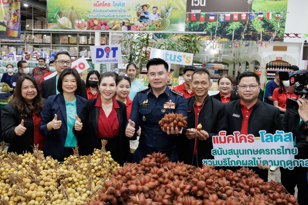 แม็คโคร – โลตัส ขานรับนโยบาย กรมการค้าภายใน กระทรวงพาณิชย์ รวมพลังสนับสนุนผลผลิตจากเกษตรกรช่วงฤดูกาลผลไม้ออกสู่ตลาด ตั้งเป้าปี 2566 นี้ รับซื้อรวมกันกว่า 54,000 ตัน กระจายผ่านสาขาของแม็คโครและโลตัส กว่า 2,800 แห่งทั่วไทย รวมถึงช่องทางออนไลน์ คาดสร้างรายได้ให้เกษตรกรกว่า 2,200 ล้านบาท พร้อมจับมือกันกระตุ้นการบริโภคอย่างต่อเนื่อง รับการท่องเที่ยวฟื้นตัว โดยมี นายวัฒนศักย์ เสือเอี่ยม อธิบดีกรมการค้าภายใน ให้เกียรติเปิดงาน
