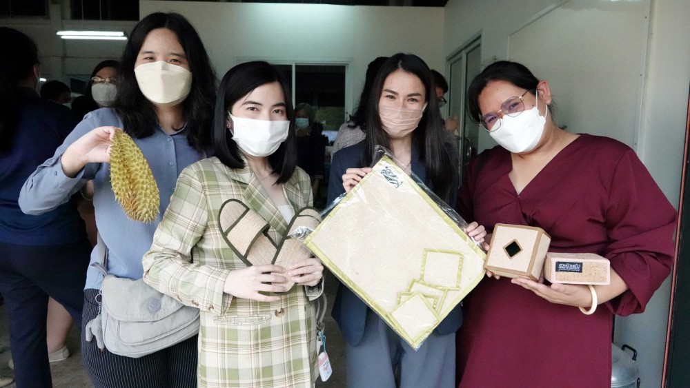 ดร.จุฑาทิตย์ นามวงษ์ อาจารย์คณะเทคโนโลยีอุตสาหกรรม มหาวิทยาลัยราชภัฏรำไพพรรณี (มรภ.รำไพพรรณี) หัวหน้าโครงการการพัฒนาผลิตภัณฑ์จากเปลือกทุเรียนเพื่อการใช้สอยในสังคมยุคใหม่ ภายใต้การสนับสนุนจากสำนักงานคณะกรรมการส่งเสริมวิทยาศาสตร์ วิจัยและนวัตกรรม (สกสว.) เปิดเผยว่า คณะวิจัยได้ศึกษาและพัฒนากรรมวิธีแปรรูปผลิตภัณฑ์จากเปลือกทุเรียน โดยสำรวจพฤติกรรมและความต้องการด้านการใช้สอยผลิตภัณฑ์ในการดำรงชีวิตของคนยุคใหม่ นำมาสู่การออกแบบและพัฒนาผลิตภัณฑ์จากเปลือกทุเรียนที่ตอบสนองการใช้งานที่เป็นมิตรกับสิ่งแวดล้อม บ่งบอกรสนิยมและสุนทรียะในการดำรงชีวิต โดยมุ่งเน้นกระบวนการผลิตในระดับชุมชนหรือผู้ประกอบการครัวเรือน และวางแผนถ่ายทอดองค์ความรู้ให้กับกลุ่มผู้ประกอบการ ผู้นำชุมชนและเกษตรกรในพื้นที่จังหวัดจันทบุรีหรือผู้สนใจทั่วไป เพื่อรองรับกลุ่มธุรกิจการท่องเที่ยวและการบริการด้านที่พักอาศัย รวมถึงร้านจำหน่ายผลิตภัณฑ์ของที่ระลึกในท้องถิ่นและร้านค้าออนไลน์