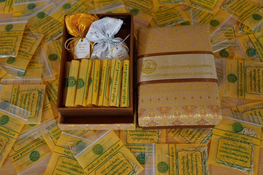 พันธุ์ข้าวดังกล่าว ส่วนหนึ่งใช้หว่านในระหว่างพิธี และจัดเป็น “พันธุ์ข้าวทรงปลูกพระราชทาน” บรรจุใส่ซองขนาดเล็กเพื่อจัดส่งให้จังหวัดต่าง ๆ สำหรับใช้แจกจ่ายแก่เกษตรกรรับไปเป็นมิ่งขวัญและสิริมงคลในการประกอบอาชีพตามพระราชประสงค์ และเมล็ดพันธุ์ที่เหลือทั้งหมด กรมการข้าวขอพระราชทานพระบรม