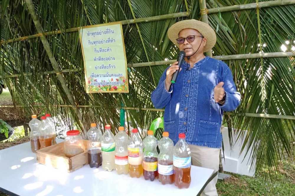 นอกจากนี้ ยังมีการปลูกหญ้าแฝกเพื่อป้องกันการพังทลายของตลิ่งและลดการชะล้างหน้าดิน ปลูกพืชตระกูลถั่ว ปอเทืองและเลี้ยงแหนแดง เพื่อปรับปรุงดิน รวมทั้งยังมีการเติมน้ำหมักจุลินทรีย์ท้องถิ่นร่วมกับปุ๋ยหมัก เพื่อปรับปรุงดินอีกทางหนึ่งด้วย จากการที่ภายในแปลงมีการปรับปรุงบำรุงดินอย่างสม่ำเสมอ ทำให้พืชมีความสมบูรณ์และให้ผลผลิตสูง โดยเฉพาะมะละกอ มีรสหวานฉ่ำ และมีกลิ่นหอม จนร้านค้าในจังหวัดพัทลุงให้ฉายาว่า “papaya aroma”