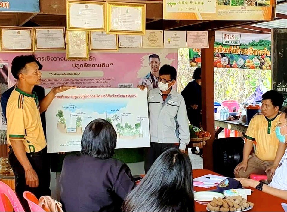 เจ้าหน้าที่กรมพัฒนาที่ดินจึงได้ให้คำแนะนำแก่เกษตรกรเพื่อแก้ไขปัญหา โดยนำเทคโนโลยีของกรมพัฒนาที่ดินมาใช้ในการวางแผนการใช้ที่ดิน มีการเก็บตัวอย่างดินเพื่อวิเคราะห์ด้วยชุดตรวจสอบดินภาคสนาม มีการปรับปรุงบำรุงดิน ด้วยการปลูกปอเทืองแล้วไถกลบเพื่อเป็นปุ๋ยพืชสด ผลิตปุ๋ยหมักด้วยผลิตภัณฑ์สารเร่งซุปเปอร์ พด. 1 ผลิตน้ำหมักชีวภาพจากผลิตภัณฑ์สารเร่งซุปเปอร์ พด. 2 มีการจัดระบบอนุรักษ์ดินและน้ำด้วยวิธีกล ได้แก่ การปรับรูปแปลงนาลักษณะที่ 1 (การปรับหัวคันนาขนาดใหญ่) ลักษณะที่ 2 (การขุดคันคูล้อม) และ ลักษณะที่ 3 (การขุดคูยกร่องสวน) และการอนุรักษ์ดินและน้ำด้วยวิธีพืช เช่น การปลูกพืชผสมผสานและการปลูกพืชหมุนเวียน มีการปลูกหญ้าแฝก และขยายพันธุ์หญ้าแฝก