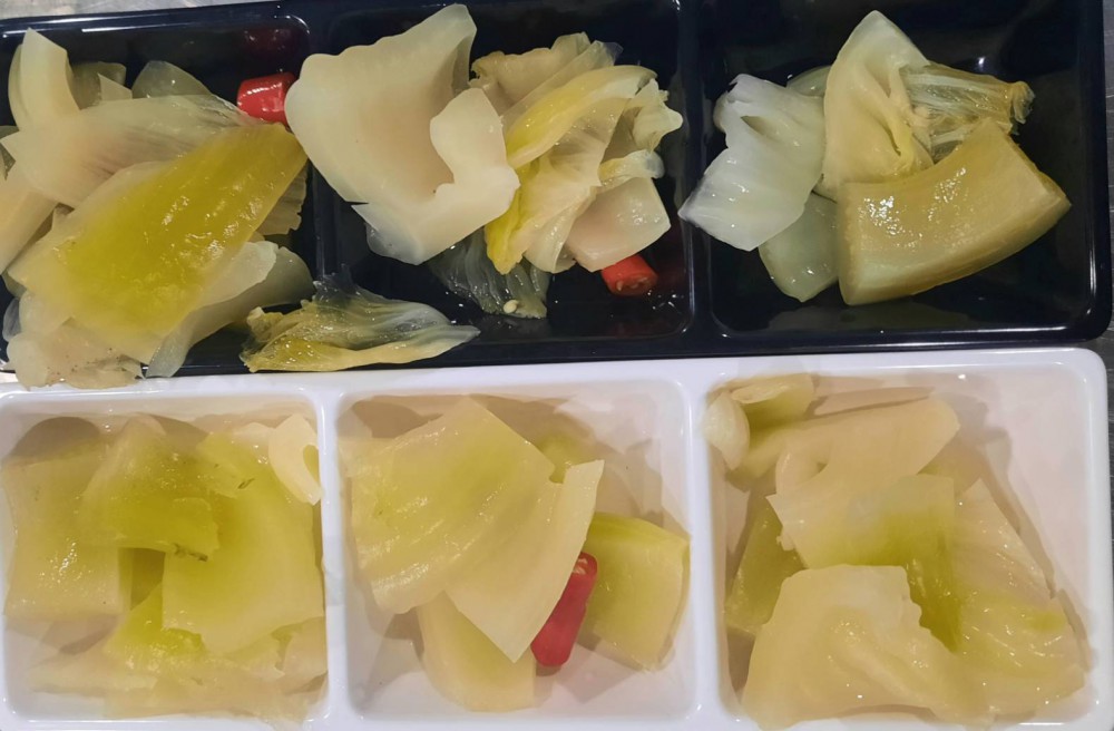 สำหรับการดองแบบโบราณ เป็นสูตรของคุณพ่อที่ดองผักกาดอร่อยมาก มีสูตรง่ายๆเริ่มที่การดองเกลือ 2 วัน จากนั้นนำมาดองปรุงรสโดยน้ำซาวข้าว ผสมด้วยเกลือ ละน้ำตาลอีก 4 วัน จะทำให้เกิดความเปรี้ยวและรสชาติที่อร่อยแบบธรรมชาติ ไม่เค็มหรือเปรี้ยวจนเกินไป แล้วมาบรรจุซอง และแพ็กสุญญากาศ ขนาด 500 กรัม สามารถเก็บในอุณหภูมิปกติได้นาน 2 เดือน และเก็บในตู้เย็นได้นาน 3-4 เดือนมีทั้งหมด 5 รสชาติ ผักกาดดองเปรี้ยว ผักดองสามรสหรือเกี่ยมฉ่าย ใช้ส่วนของใจผักมาดอง รสยำเกี่ยมฉ่าย ที่รสชาติอร่อย เผ็ดพอดี มีความหอมของพริกสดอยู่ในเนื้อ ยำเกี่ยมฉ่ายน้ำมันงาขาว ที่ถือตัวเด่น ได้ทั้งหอมอร่อย และคุณค่าทางอาหารจากงาขาว และผักกาดดองแห้ง เป็นต้น