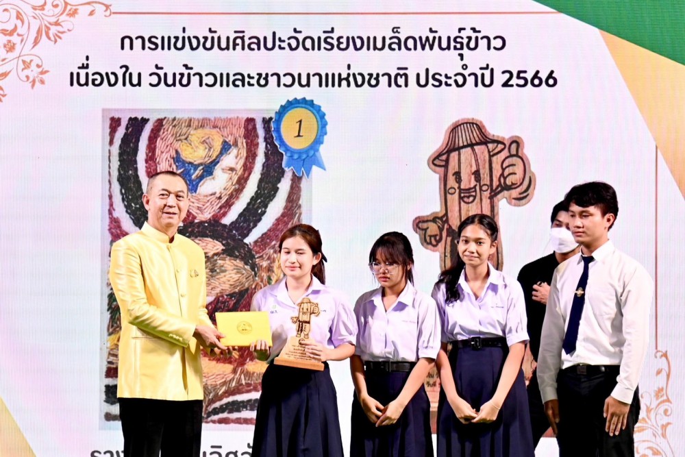 โอกาสนี้ รัฐมนตรีว่าการกระทรวงเกษตรฯ ได้มอบรางวัลชนะเลิศการประกวดแข่งขันแฟนพันธุ์แท้ข้าวไทย การประกวดวาดภาพสีโปสเตอร์ภายใต้หัวข้อ “ข้าวและชาวนาไทย” และการประกวดงานศิลปะ เรียงเมล็ดพันธุ์ข้าว ภายใต้หัวข้อ “กสิกรรม นําไทยยั่งยืน” ให้กับผู้ชนะการแข่งขันด้วย
