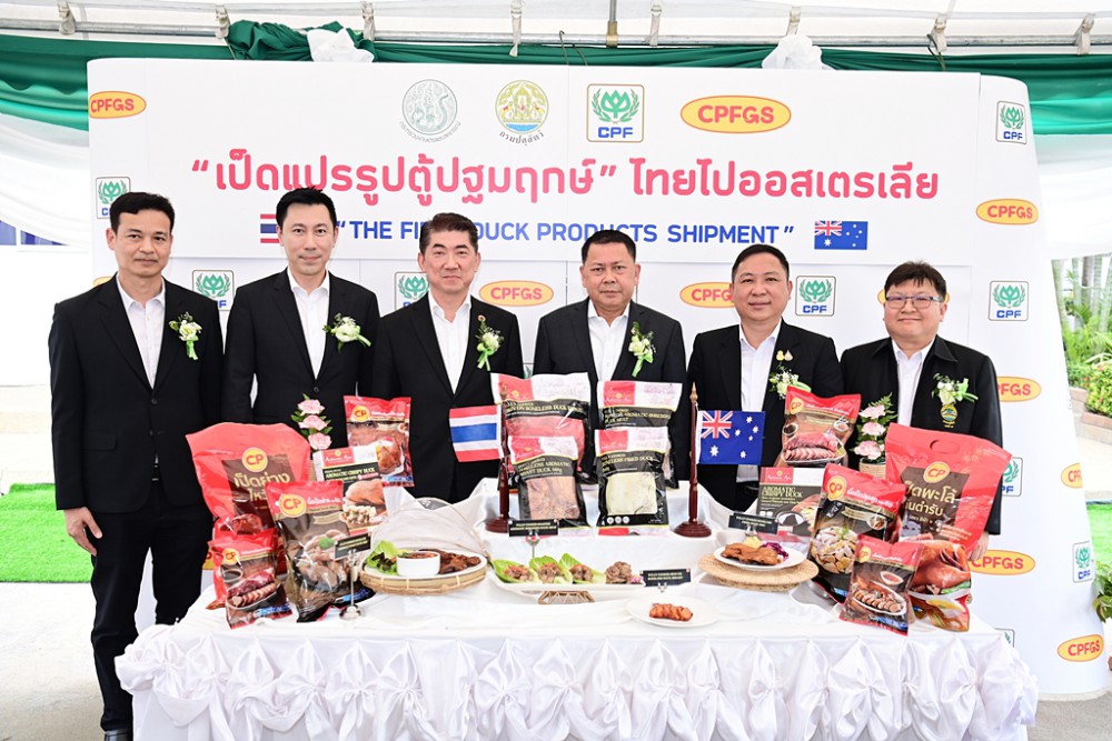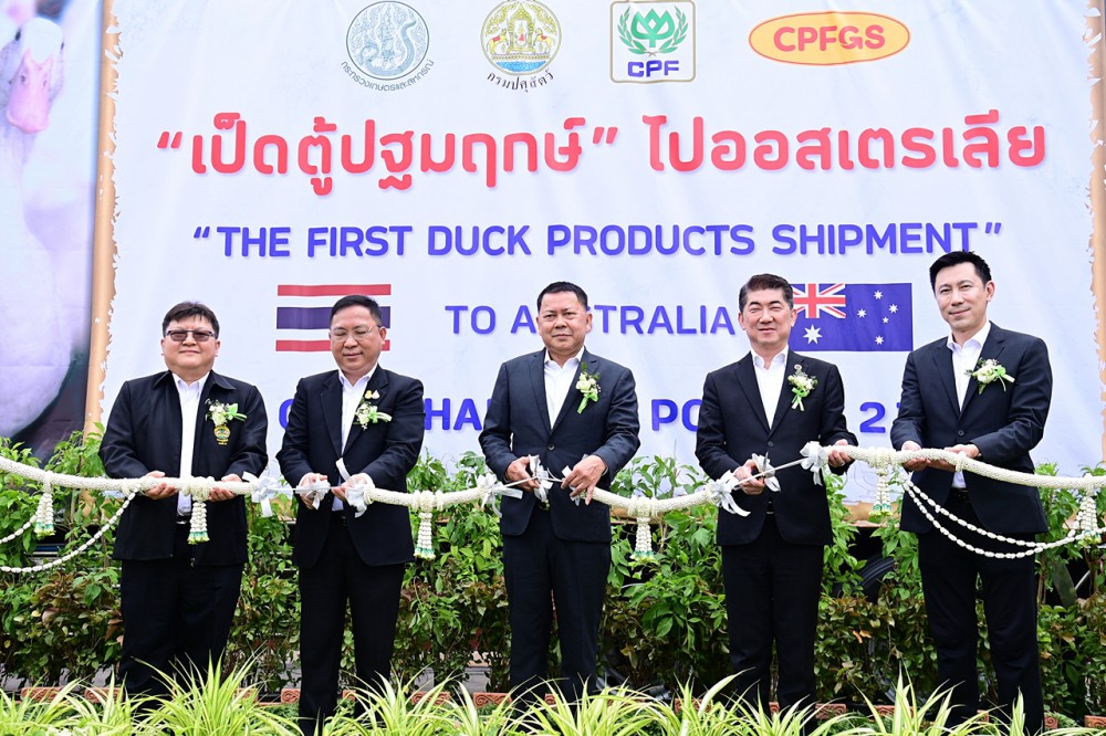 เริ่มแล้ว!! รอบปฐมฤกษ์ส่งออก “ผลิตภัณฑ์เนื้อเป็ดปรุงสุก” ไปยังแดนจิงโจ้ ภายใต้ความร่วมมือของกรมปศุสัตว์ กระทรวงเกษตรฯ และซีพีเอฟ พร้อมจัดพิธีปล่อยตู้คอนเทนเนอร์ “เป็ดแปรรูป ตู้ปฐมฤกษ์”” ของไทยไปออสเตรเลีย เผยเป็นตู้แรกในประวัติศาสตร์ หลังเจรจายาวนานถึง 8 ปี CPF วางเป้าส่งออกปีละ 500-600 ตัน จากทั้งหมด 1,200 ตัน