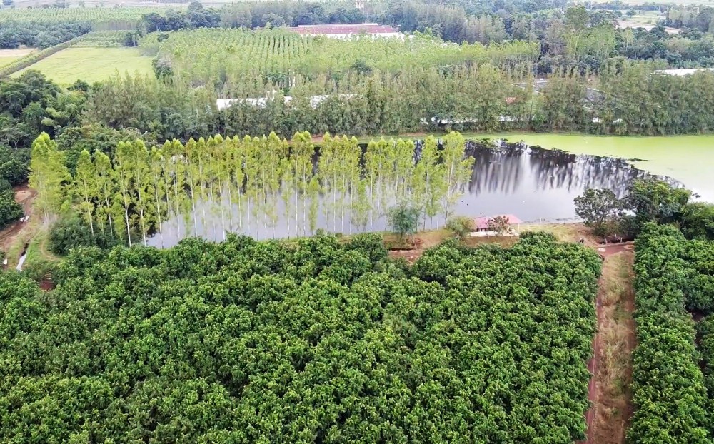 “ฟาร์มหมูคือโรงปุ๋ยของสวนส้มโอ เพราะหมูที่เลี้ยงในฟาร์มกินอาหารเหมือนคน มีทั้งข้าวโพด ปลาป่น กากถั่ว แร่ธาตุ วิตามิน ซึ่งย่อยไม่ได้ทั้ง 100% ส่วนที่เหลือเข้าระบบไบโอแก๊ส หมักได้ก๊าซมีเทน นำมาใช้ปั่นไฟสำหรับฟาร์มหมู แต่ในน้ำหลังการบำบัดก็ยังเหลือแร่ธาตุอยู่อีก 10-20% เราก็นำมาเลี้ยงส้มโอ ช่วยลดการใช้ปุ๋ยเคมีได้ถึง 30-40% ค่าปุ๋ยลดลงได้มาก และคุณภาพดินก็ดีขึ้นด้วย”