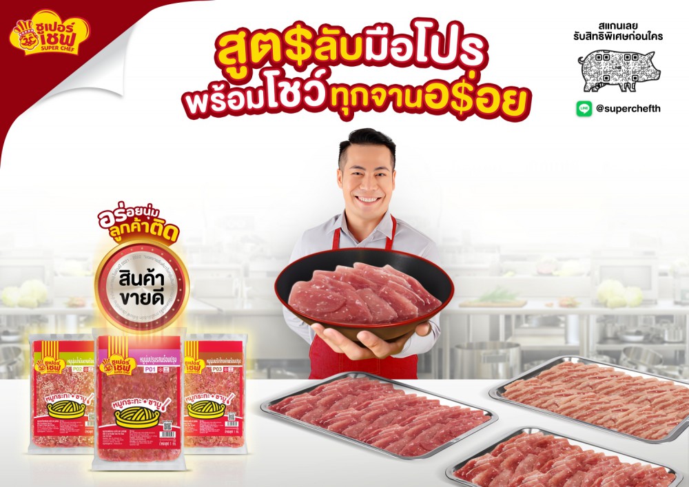 ‘ซูเปอร์เชฟ‘ มุ่งมั่นและพัฒนาสินค้าโดยคำนึงถึงคุณภาพตามมาตรฐานการผลิตระดับสากล เพื่ออำนวยความสะดวกแก่ผู้ประกอบการร้านอาหารสามารถไปปรุงต่อเป็นเมนูประจำร้านได้อย่างรวดเร็ว สำหรับสินค้ากลุ่ม ‘หมูนุ่มปรุงรสพร้อมปรุง’ เช่น หมูนุ่มปรุงรสน้ำมันงา หมูนุ่มปรุงรสพริกไทยดำ เป็นต้น ได้รับความไว้วางใจจากผู้ประกอบการ จนทำให้มียอดขายอันดับ 1 ถึง 3 ปีซ้อน ซีพีเอฟคัดสรรเนื้อหมูคุณภาพ ปลอดภัย ปลอดสารเร่งเนื้อแดง หมักเข้ากับเครื่องปรุงชั้นดีด้วยระบบสุญญากาศ เพื่อให้เข้าเนื้อและเสริมรสชาติให้อร่อยยิ่งขึ้น ซึ่งสามารถตรวจสอบย้อนกลับได้ตลอดกระบวนการผลิต จำหน่ายที่ Makro, Lotus’s, CP Freshmart ใกล้บ้านทั่วประเทศ รวมถึงร้านสะดวกซื้อ 7-Eleven และช่องทางออนไลน์ต่างๆ