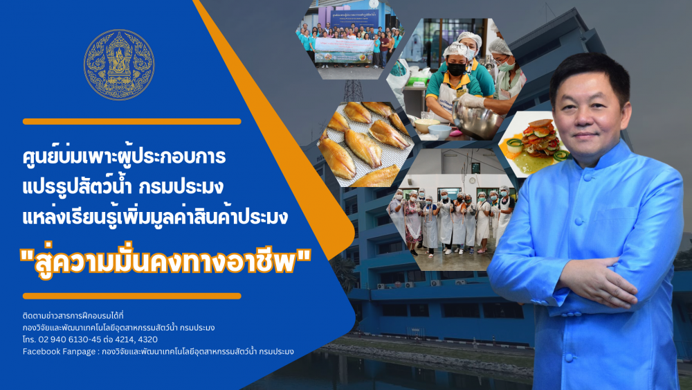 นายถาวร ทันใจ รองอธิบดีกรมประมง กล่าวว่า ศูนย์บ่มเพาะผู้ประกอบการแปรรูปสัตว์น้ำ ซึ่งอยู่ภายใต้การกำกับดูแลของกองวิจัยและพัฒนาเทคโนโลยีอุตสาหกรรมสัตว์น้ำ กรมประมง ปัจจุบันตั้งอยู่ที่ ตำบลบางพึ่ง อำเภอพระประแดง จังหวัดสมุทรปราการ มีพื้นที่ขนาด 440 ตารางเมตร พร้อมไปด้วยเครื่องมือและอุปกรณ์การแปรรูปที่ทันสมัย เหมาะสำหรับชาวประมง เกษตรกรรายย่อย วิสาหกิจชุมชนขนาดย่อมและขนาดกลาง และมีวัตถุประสงค์เพื่อถ่ายทอดเทคโนโลยีการแปรรูปสัตว์น้ำ เทคนิคการบรรจุภัณฑ์ การจัดการหลังการจับ รวมทั้ง สุขลักษณะที่ดีในการแปรรูปผลิตภัณฑ์สัตว์น้ำ ภายใต้แผนการดำเนินการฝึกอบรมตั้งแต่ปีงบประมาณ พ.ศ. 2558 เป็นต้นมา โดยมีหลักสูตรการจัดฝึกอบรม อาทิ การถ่ายทอดเทคโนโลยีการใช้เครื่องขอดเกล็ดปลา เทคนิคการแปรรูปสัตว์น้ำ การแปรรูปผลิตภัณฑ์จากปลานิล ปลานวลจันทร์ทะเล ปลากะพง และปลาชะโด โดยรังสรรค์เป็นผลิตภัณฑ์ต่าง ๆ เช่น ไส้กรอกปลา ลูกชิ้นปลา กุนเชียงปลา นักเก็ตปลา ปลาก้างนิ่มรมควัน รวมถึงการจัดหาและการเลือกวัตถุดิบที่มีคุณภาพ การขยายช่องทางการตลาด และเทคนิคการบรรจุภัณฑ์ เป็นต้น