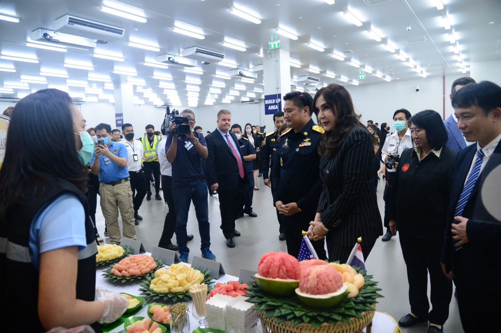“บริษัทเอเซีย เอ็กโซติคคอร์ปอชั่น จะส่งส้มโอ จำนวน 72 กล่องน้ำหนัก 864 กิโลกรัม เป็นชิปเม้นท์แรกของประเทศไทย รวมทั้งยังมีมะม่วงพันธุ์น้ำดอกไม้ มหาชนก แดงจักรพรรดิ และเขียวเสวย จำนวน 108 กล่อง น้ำหนัก 540 กิโลกรัม จัดเป็นชิปเม้นท์แรกของฤดูกาลผลิตปี 2566 และมังคุด จำนวน 20 กล่อง น้ำหนัก 140 กิโลกรัม นอกจากนี้ กรมวิชาการเกษตรยังมีแผนที่จะสนับสนุนภาคเอกชนให้มีการจัดส่งทางเรือเพื่อลดต้นทุนและจัดส่งได้ครั้งละจำนวนมาก ซึ่งอยู่ระหว่างการทดสอบในเชิงคุณภาพ หากได้ผลดีจะเป็นการเพิ่มช่องทางให้ผู้ประกอบการนำไปใช้ในเชิงการค้าต่อไป” อธิบดีกรมวิชาการเกษตร กล่าว
