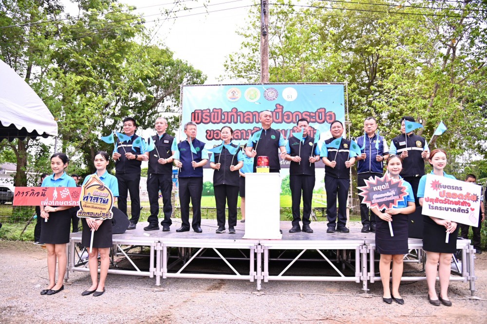 รมว. เกษตรเป็นประธานพิธีฝังทำลายซากกระบือของกลางลักลอบนำเข้ากว่า 110 ตัน ณ ศูนย์กักกันสัตว์เพชรบุรี ย้ำนโยบายป้องกันและปราบปรามการลักลอบนำเข้าเนื้อสัตว์อย่างเข้มงวด ย้ำหากพบ จับอย่างเดียว ขณะที่อธิบดีกรมปศุสัตว์เผย ตลอดปี 2565 ถึงปัจจุบัน จับกุมการลักลอบนำเข้าเนื้อกระบือและโคแล้ว 88 ครั้ง น้ำหนักรวมกว่า 354 ตัน คิดเป็นมูลค่ากว่า 53.2 ล้าน
