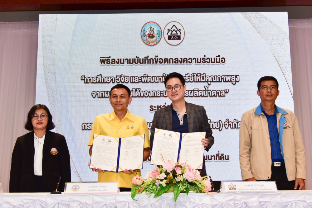กรมพัฒนาที่ดิน ร่วมกับ บริษัท เอจี ทำการศึกษา วิจัย และพัฒนาปุ๋ยอินทรีย์ให้มีคุณภาพสูง จากผลพลอยได้ของกระบวนการผลิตน้ำตาล หวังลดต้นทุนการผลิตปุ๋ยของเกษตรกร และเพิ่มประสิทธิภาพการผลิตพืชได้อย่างยั่งยืน เพื่อให้เกษตรกรมีคุณภาพชีวิตที่ดีขึ้น