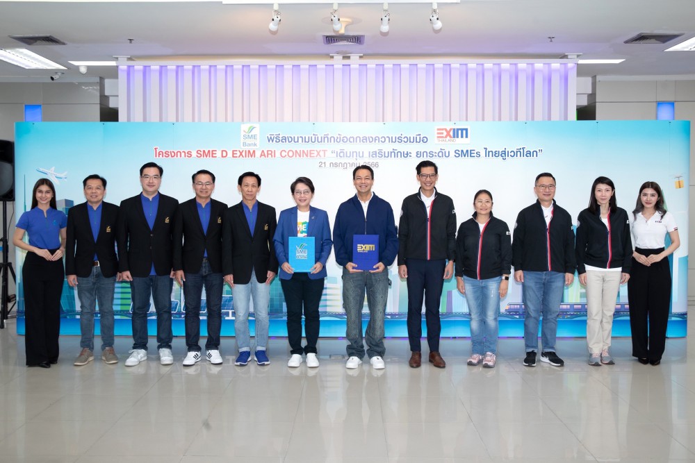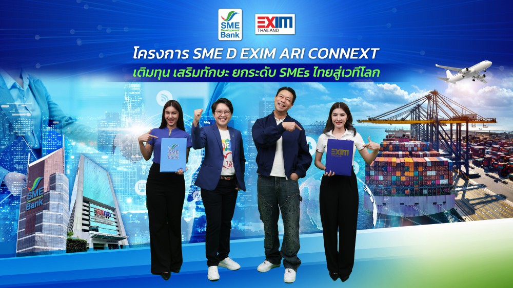 2 สถาบันการเงินเฉพาะกิจของรัฐ ภายใต้กระทรวงการคลัง “SME D Bank – EXIM BANK” สร้างมิติใหม่ความช่วยเหลือผู้ประกอบการ SMEs ไทย ผนึกกำลังเดินหน้าโครงการ “SME D EXIM ARI CONNEXT” เชื่อมโยงการสนับสนุนผู้ประกอบการได้ครอบคลุมทุกระดับและทุกกลุ่มธุรกิจอย่างไร้รอยต่อ ทั้งด้านแหล่งทุน และด้านพัฒนาเพิ่มทักษะความรู้ ผลักดันสู่การเติบโตยั่งยืน