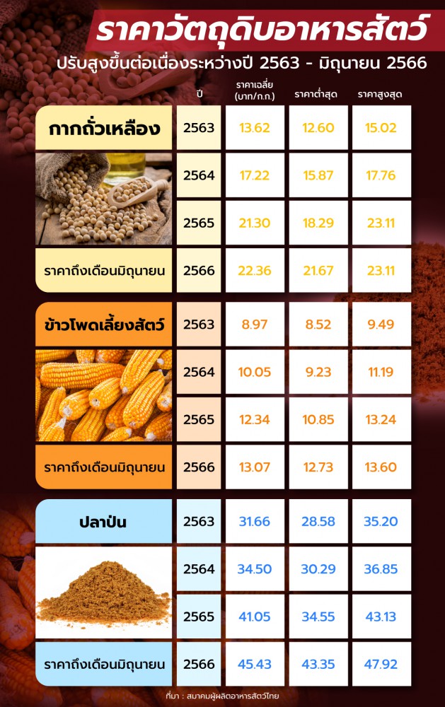อีกทั้งเกษตรกรผู้เลี้ยงสัตว์ประสบปัญหาขาดทุนสะสมต่อเนื่อง ตั้งแต่เกิดการระบาดของโควิด-19 สงครามรัสเซีย-ยูเครน ที่ลากยาวมาจนถึงปัจจุบัน สภาพอากาศแล้ง ซึ่งเป็นผลมาจาก ‘เอลนีโญ’ จะทำให้ผลผลิตการเกษตรลดลง ตลอดจนรัสเซียไม่รับรองความปลอดภัยในทะเลดำอีกต่อไป เป็นปัญหาใหญ่ต่อการส่งออกข้าวโพดเลี้ยงสัตว์ ข้าวสาลี เรพซีด